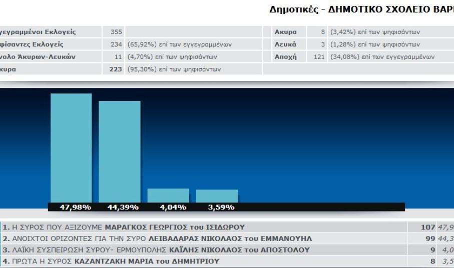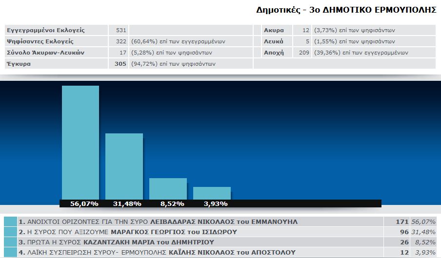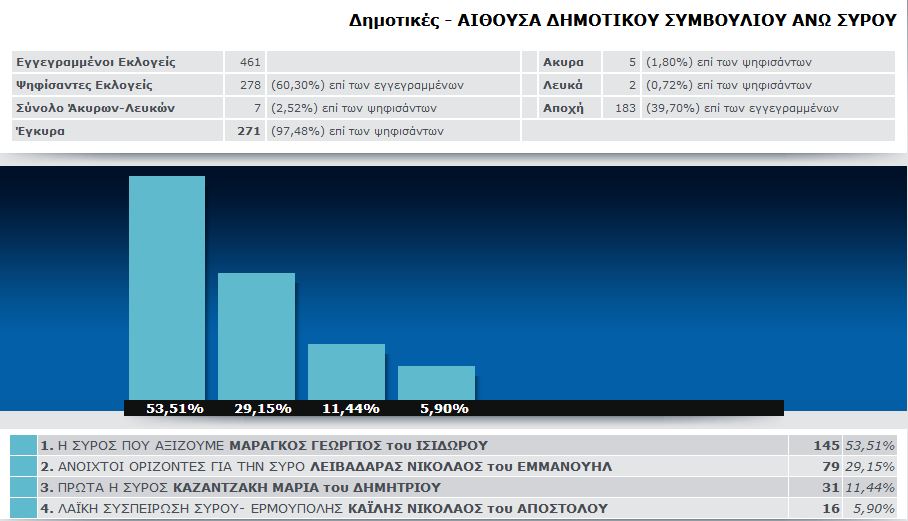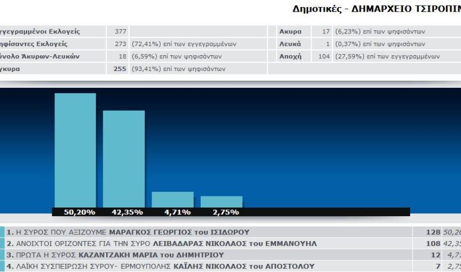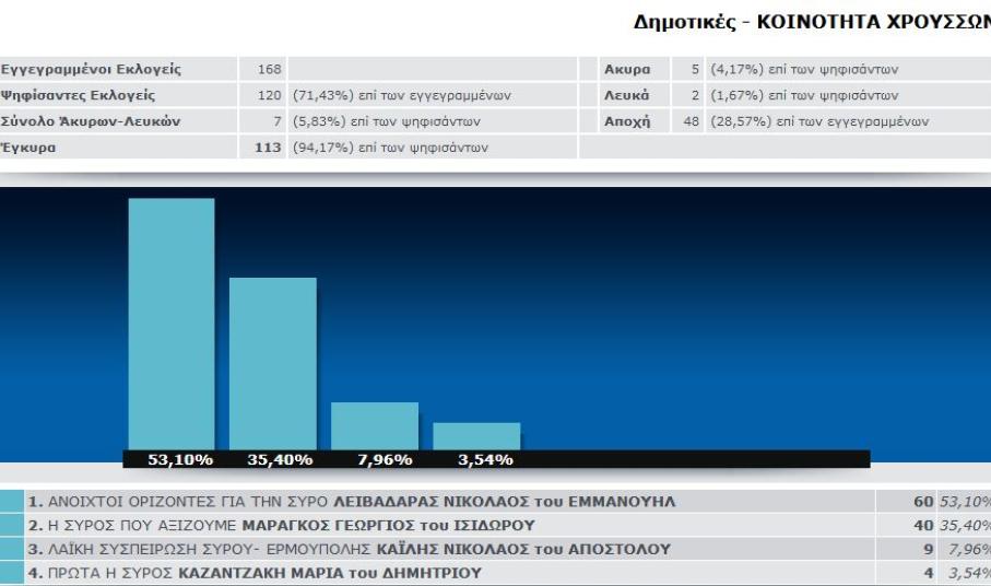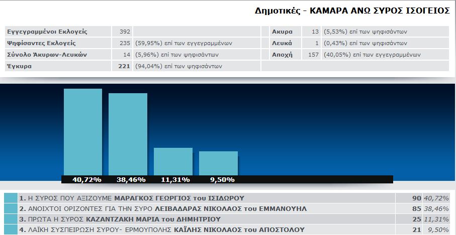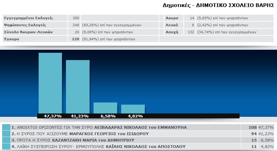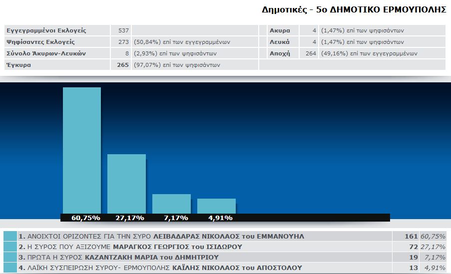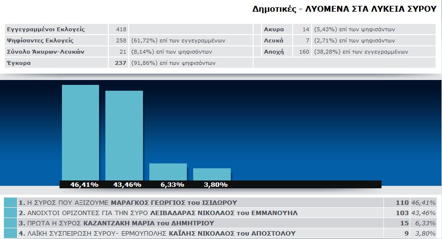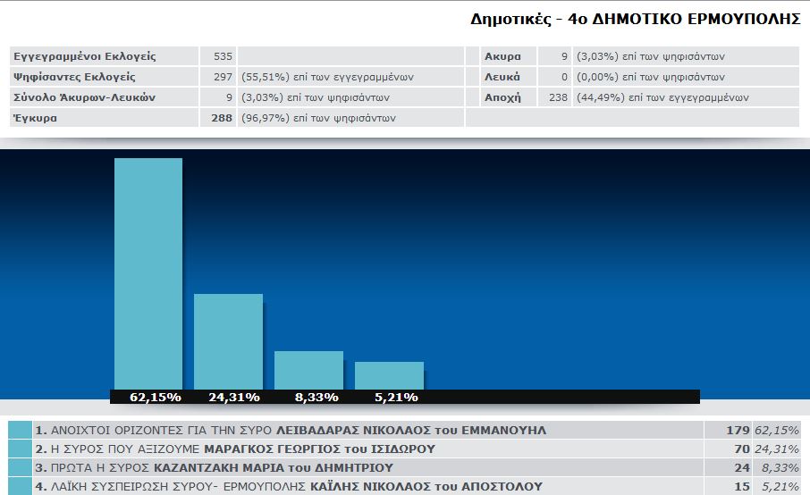 Τα αποτελέσματα για το Δήμου Σύρου Ερμούπολης