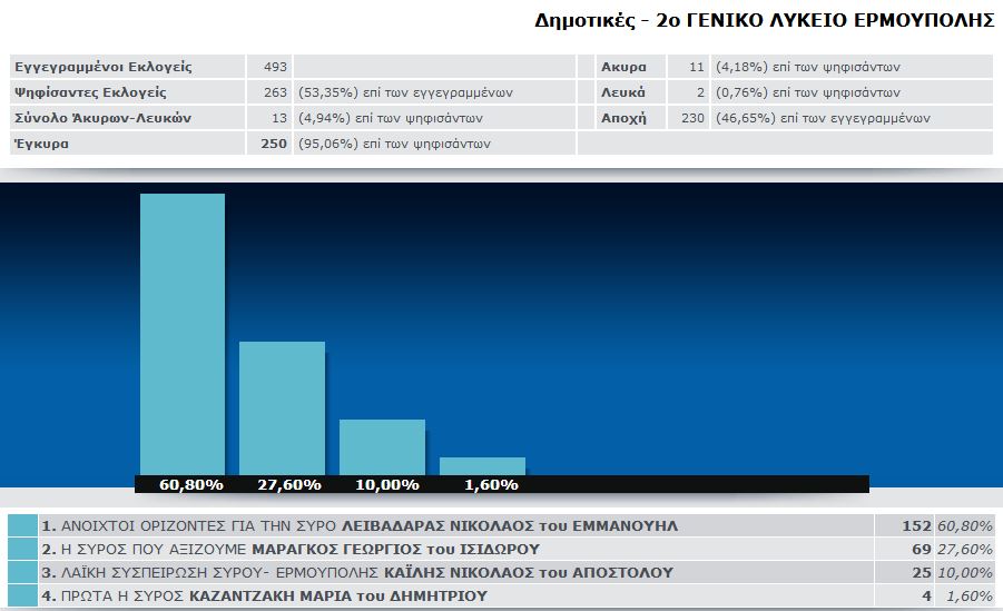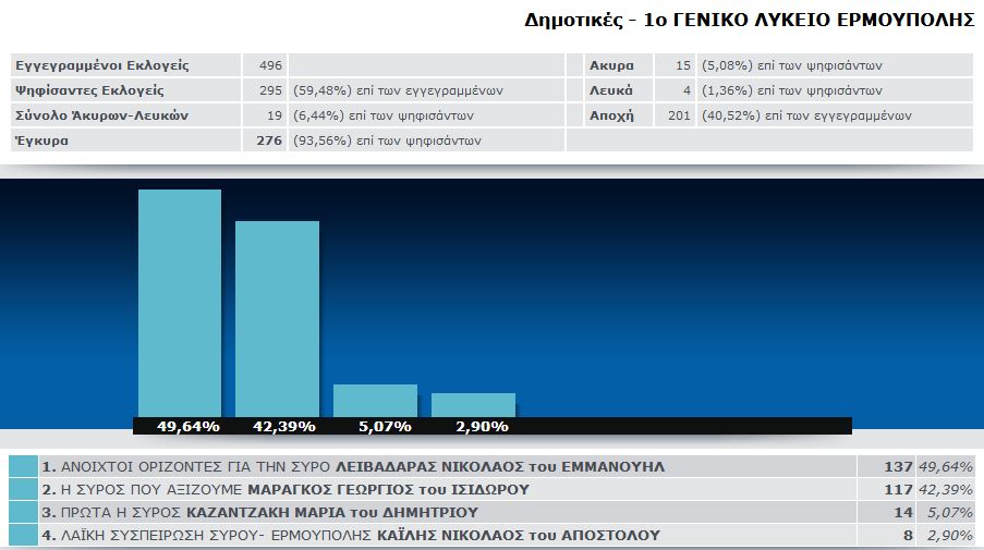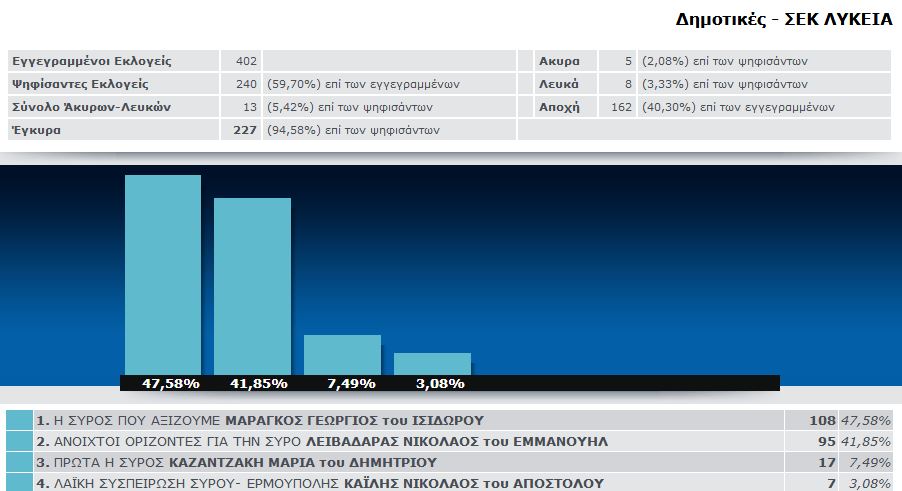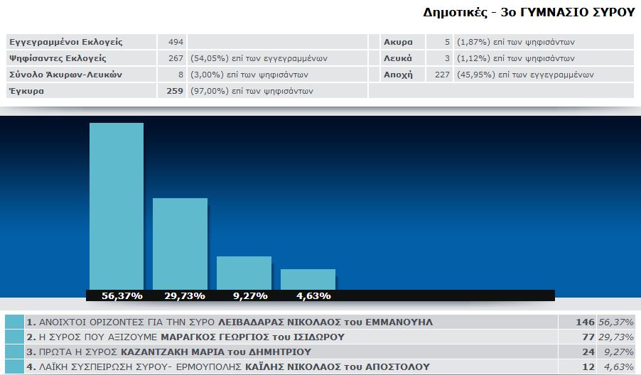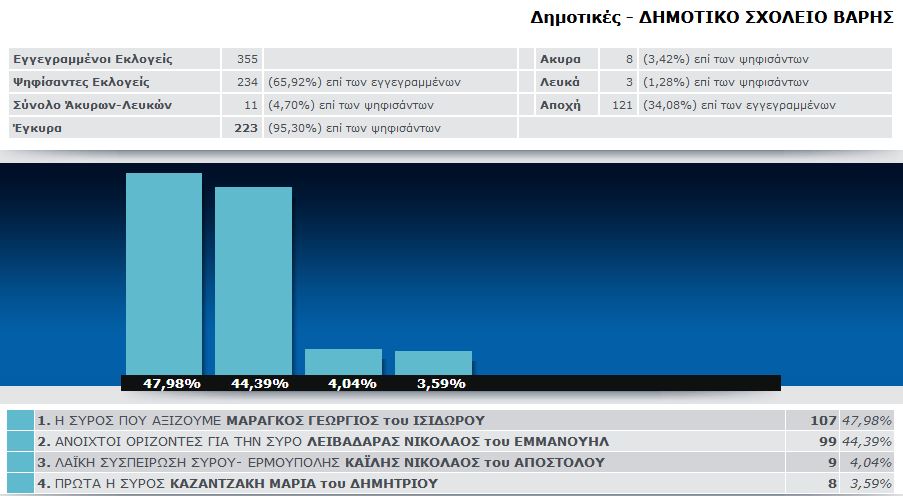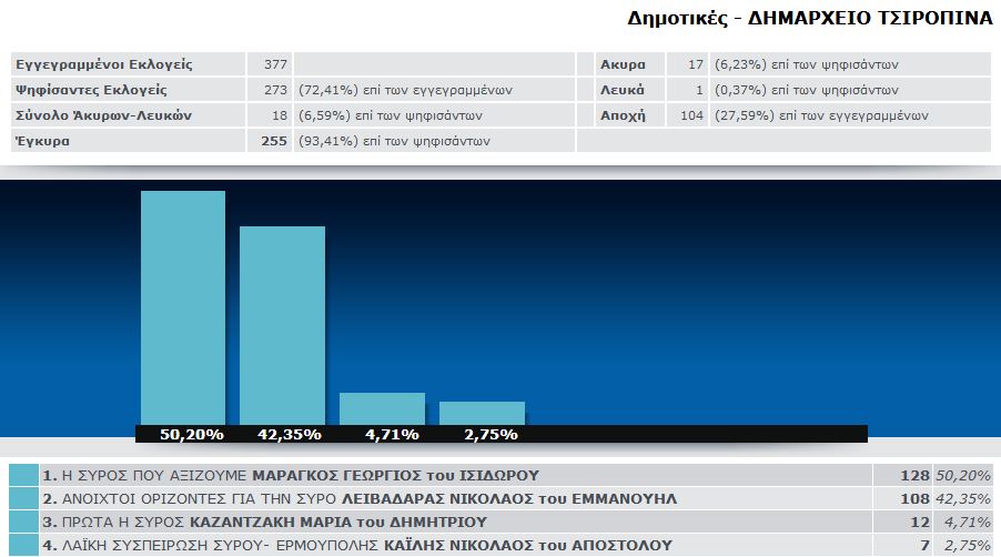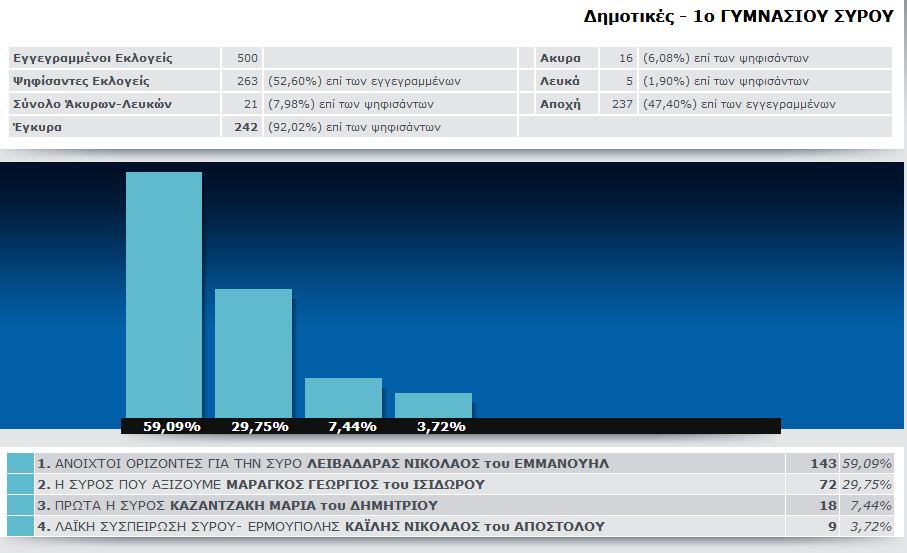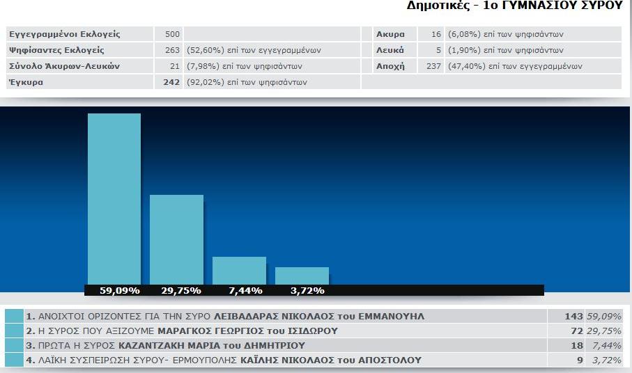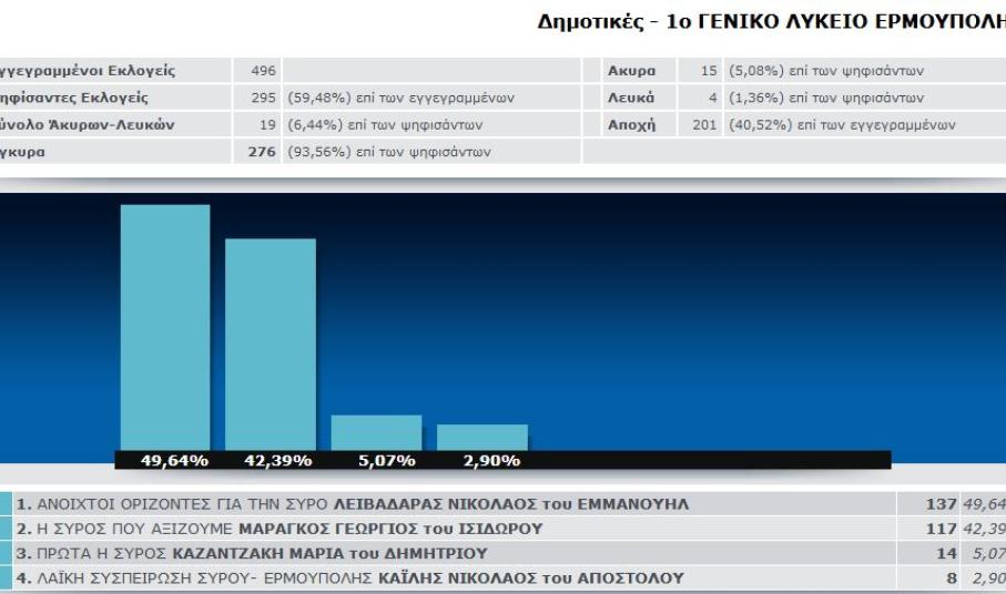 Τα αποτελέσματα για το Δήμου Σύρου Ερμούπολης
