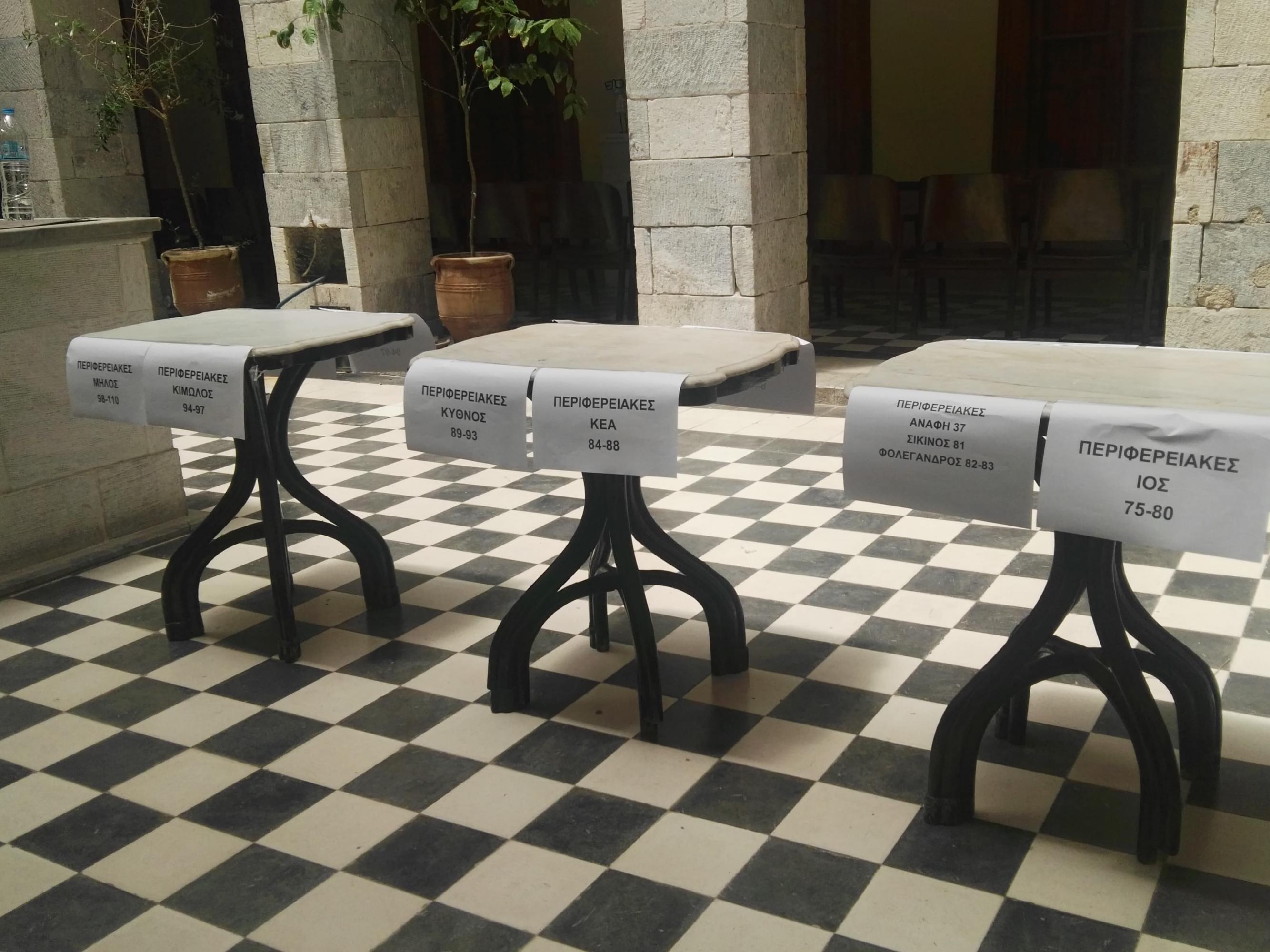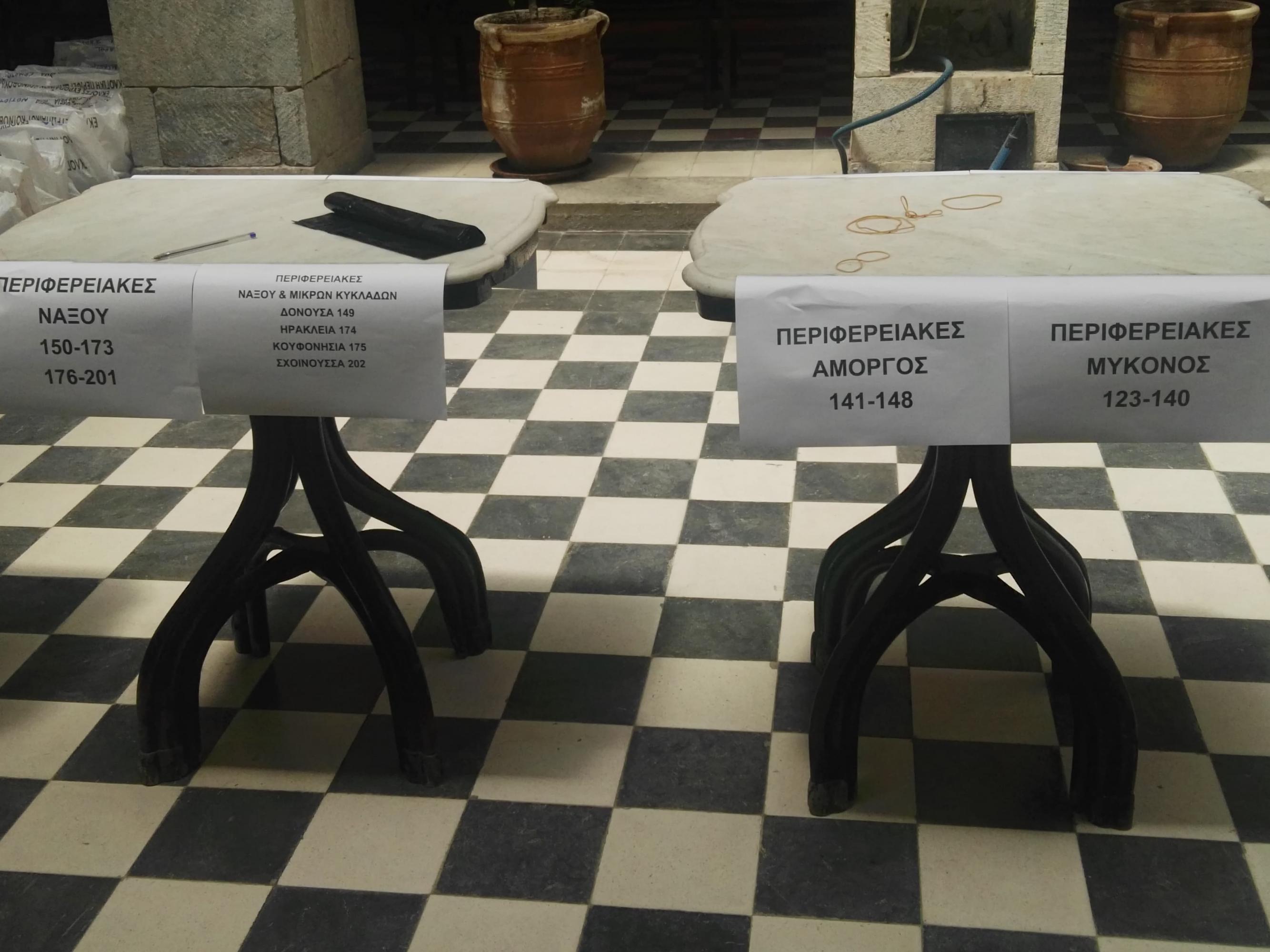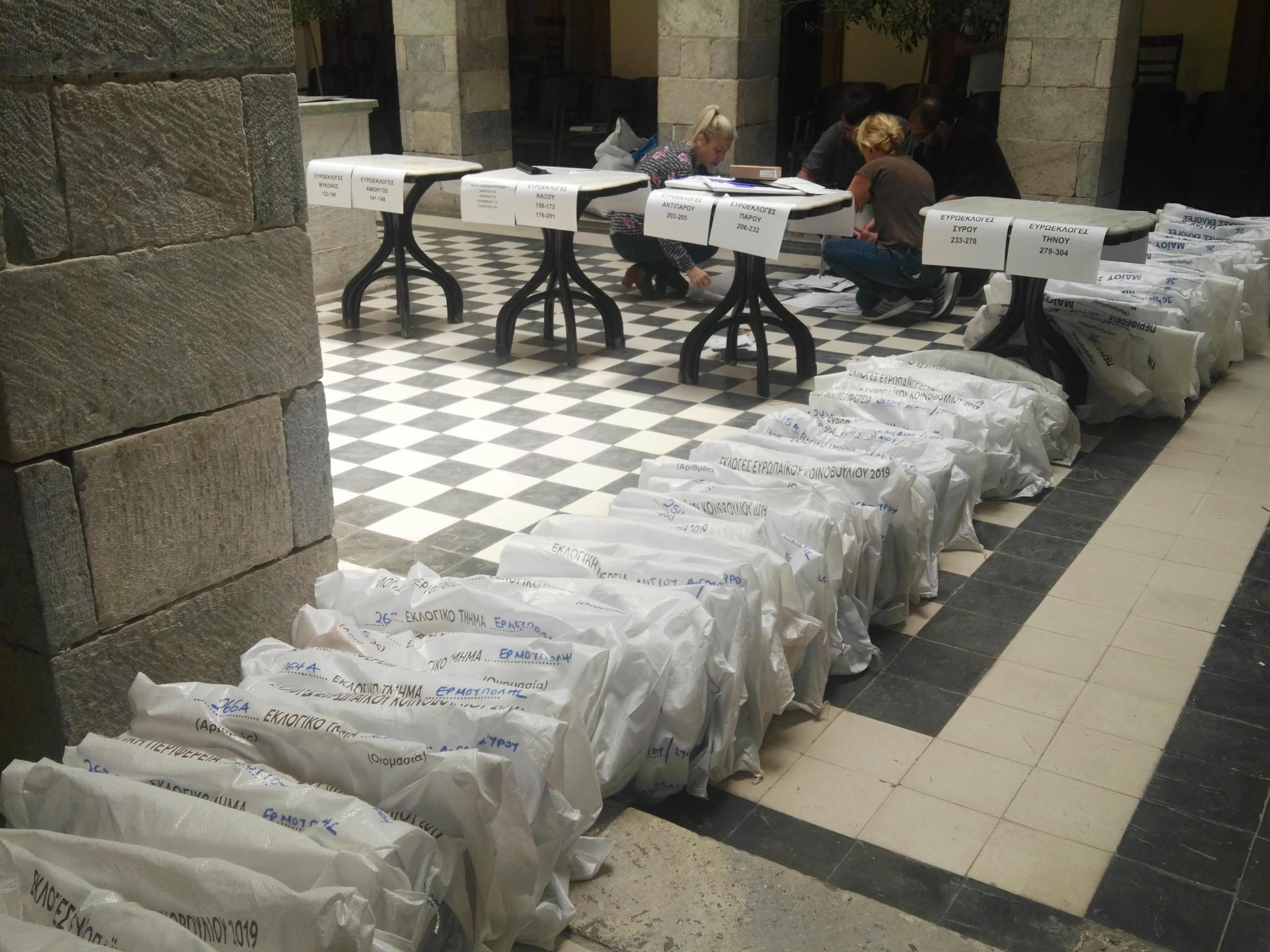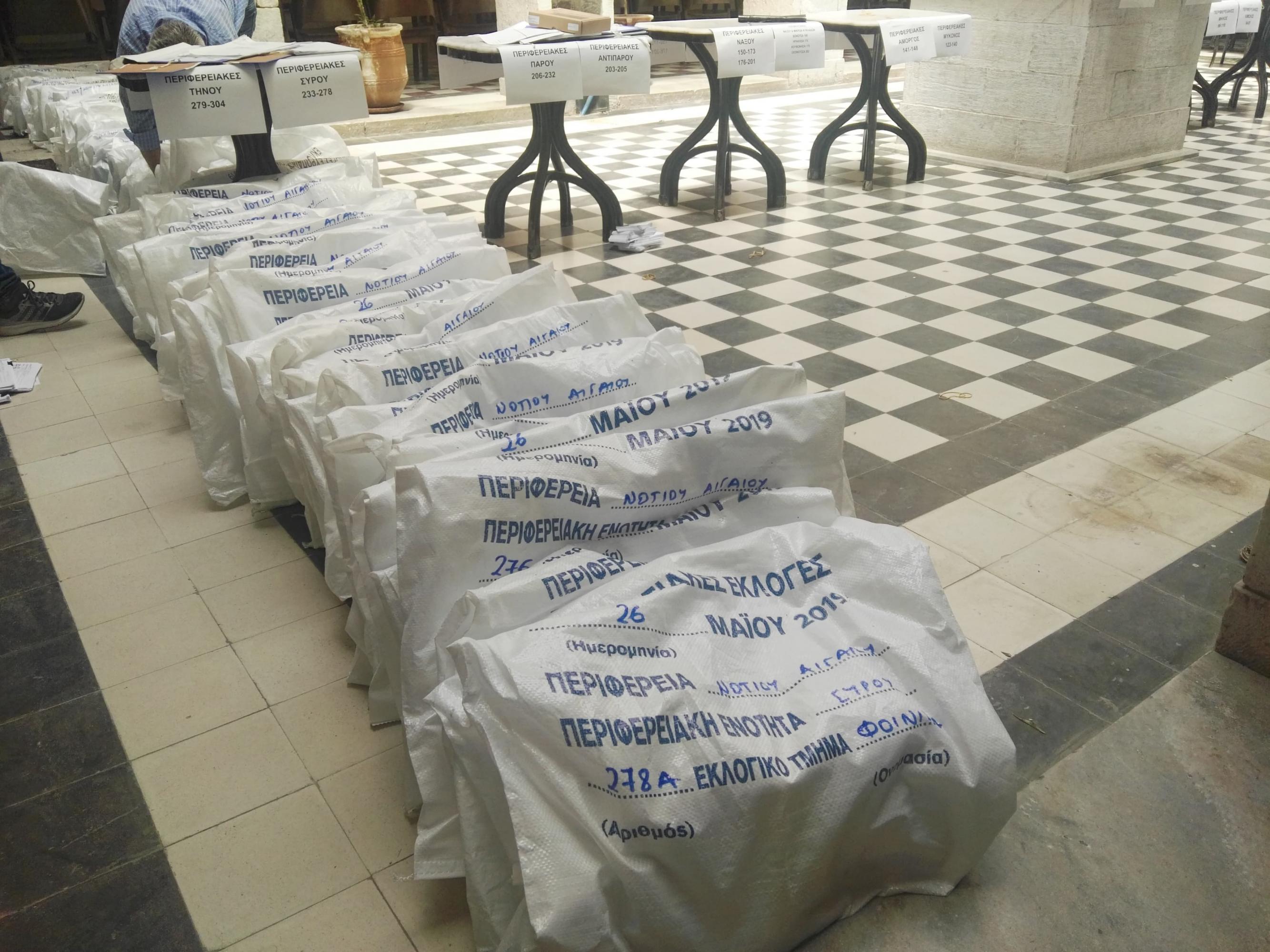 Το σχετικό εκλογικό υλικό ταξινομούσαν χθες ανά νησί οι αρμόδιοι υπάλληλοι στον χώρο του Πρωτοδικείου Σύρου εντός του Δημαρχιακού Μεγάρου, προκειμένου όσο το δυνατόν αμεσότερα να γνωρίζουν οι δημότες και οι κάτοικοι των νησιών ποια πρόσωπα εξέλεξαν στην Τοπική και Περιφερειακή Αυτοδιοίκηση, όπως και στις Ευρωεκλογές.