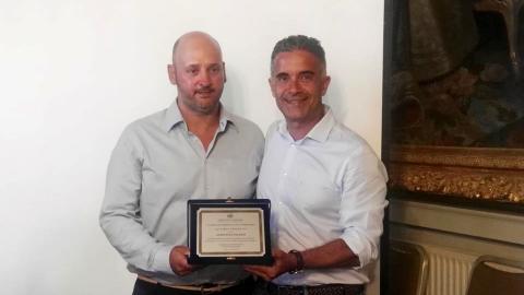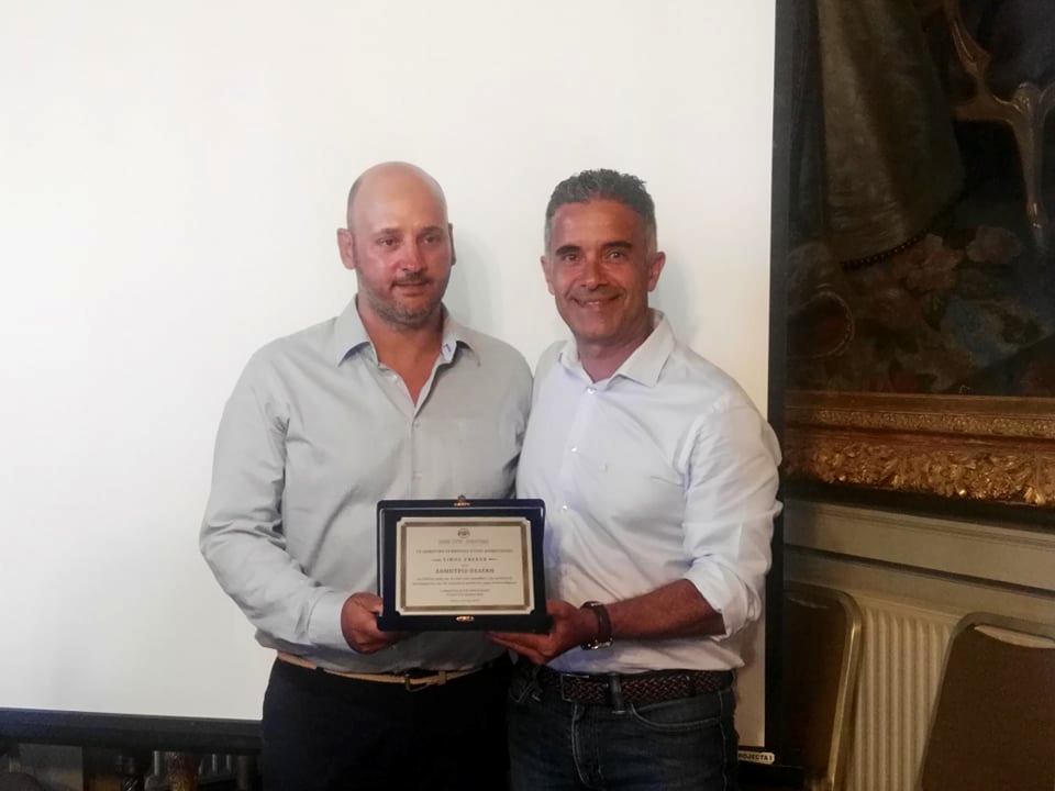 Με ιδιαίτερη σεμνότητα και δίνοντας συγχαρητήρια πρωτίστως στα παιδιά, που αντιμετωπίζουν με θάρρος τον καρκίνο, δέχτηκε τη διάκριση και την τιμητική πλακέτα που του απένειμε ο απερχόμενος Δήμαρχος Σύρου – Ερμούπολης, κ. Γιώργος Μαραγκός, εκ μέρους του Δημοτικού Συμβουλίου, ο συριανός Δημήτρης Πελέκης.