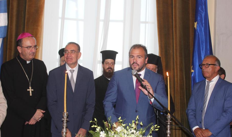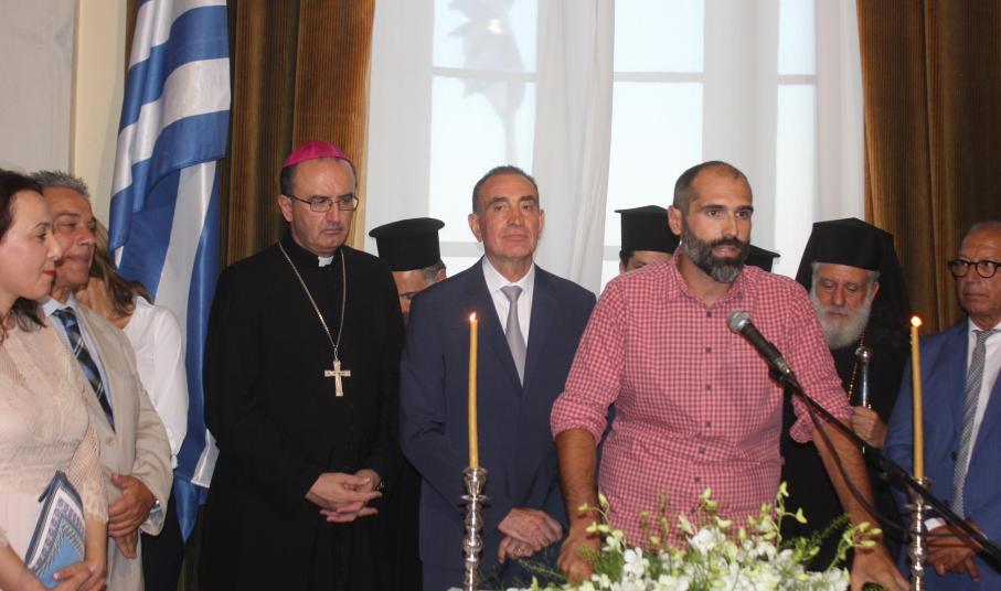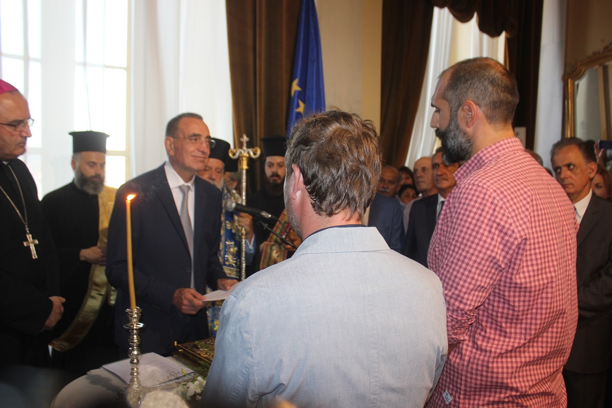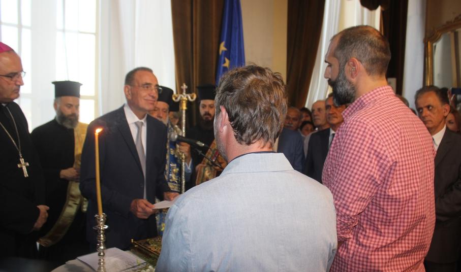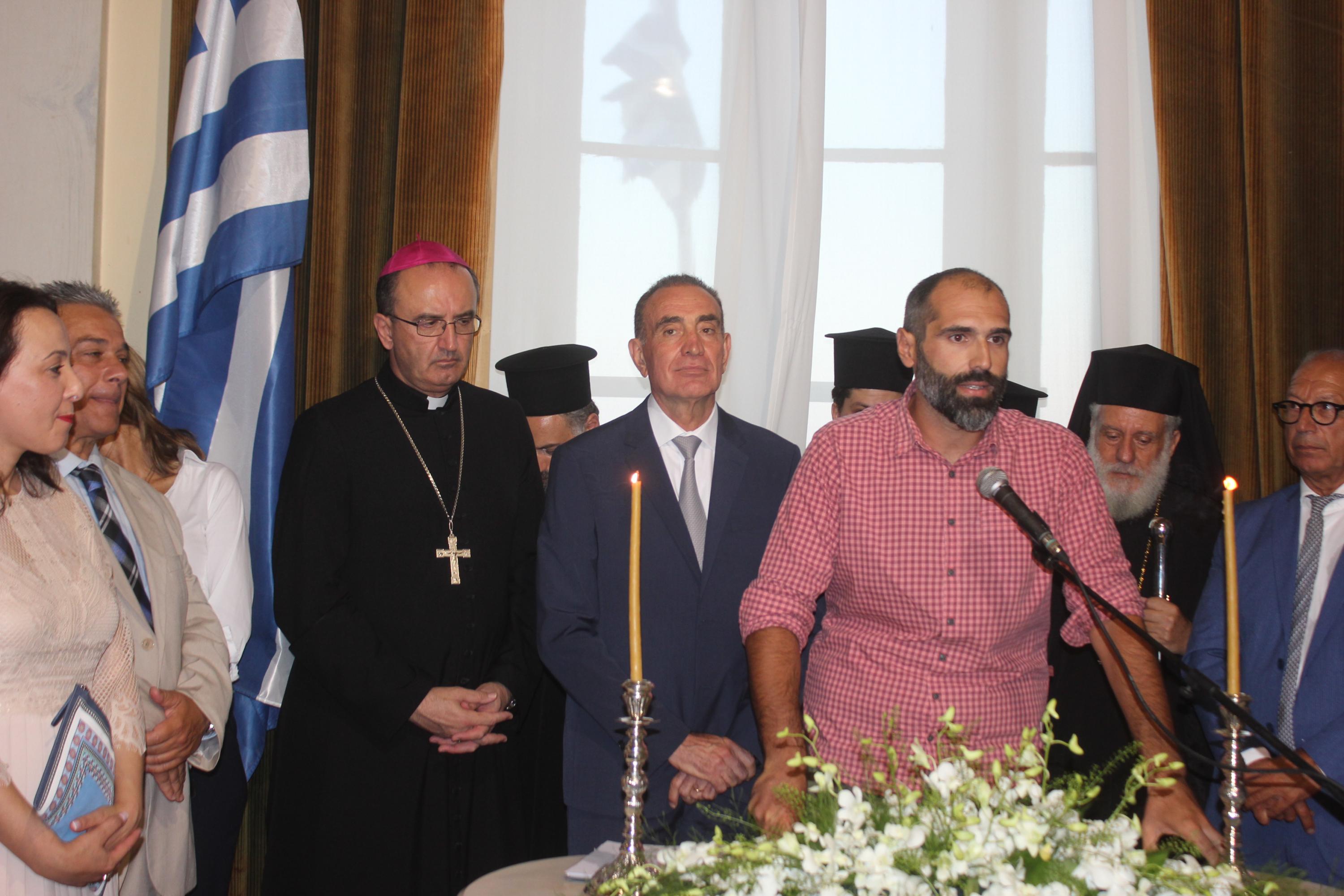 Την τελετή ορκωμοσίας πραγματοποίησε ο Σεβασμιώτατος Μητροπολίτης Σύρου, κ. Δωρόθεος Β΄, στην οποία συμμετείχε και ο Καθολικός Επίσκοπος Σύρου, Σεβ. π. Πέτρος Στεφάνου, καθώς επίσης ο βουλευτής Κυκλάδων της Νέας Δημοκρατίας, Φίλιππος Φόρτωμας, ο Περιφερειάρχης Ν. Αιγαίου Γιώργος Χατζημάκρος, ο χωρικός Αντιπεριφερειάρχης, Γιώργος Λεονταρίτης, αλλά κι εκπρόσωποι φορέων, όπως ο πρόεδρος του Επιμελητηρίου Κυκλάδων, Γιάννης Ρούσσος και διοικητές και υπηρεσιακά στελέχη των Σωμάτων Ασφαλείας της Σύρου, του νομού και της Περιφέρειας.
