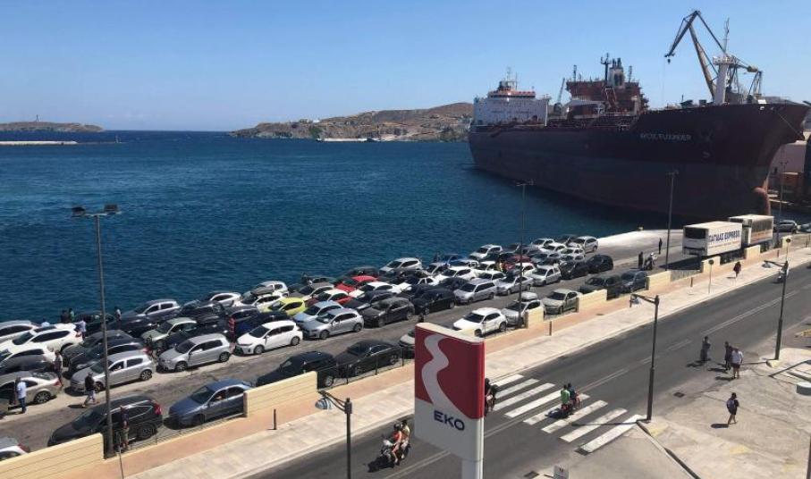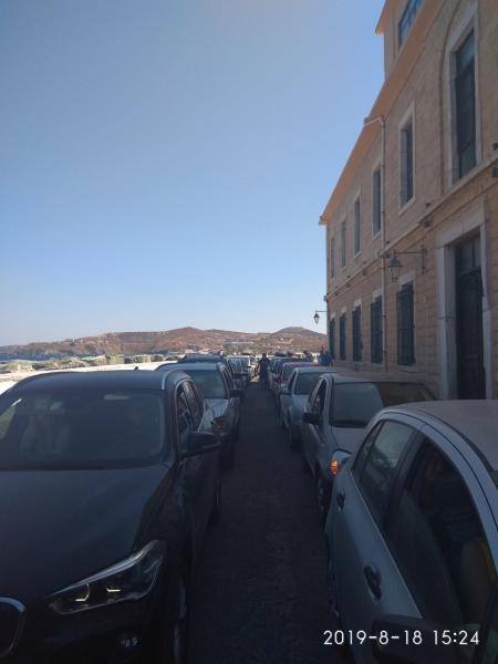 Ο Ιούλιος είχε μία περιορισμένη κίνηση και δεν ήταν ιδιαίτερα αυξημένη η επισκεψιμότητα στο νησί. Το αντίθετο όμως παρατηρήθηκε τον Αύγουστο. Ο φετινός Αύγουστος είχε πάρα πολύ κόσμο και συνεχίζει να έχει κόσμο το νησί. Όταν λοιπόν, έρχονται τα πλοία, τα οχήματα τα οποία αναμένουν, ξεπερνούν και τα 400 – 450 στον αριθμό. Το λιμάνι μας χωρά μέχρι 200 – 250 οχήματα. Είναι αδύνατον να φιλοξενηθούν τόσα οχήματα μέσα στις υφιστάμενες λιμενικές υποδομές. Εκεί λοιπόν μοιραία τα οχήματα ταξινομούνται κι εκτός λιμένα. Δεν επιλέξαμε να υπάρξει μία συνέχιση της ταξιθέτησής τους εκτός του λιμένα και στο οδικό δίκτυο, το οποίο συνδέεται με το λιμάνι της Σύρου, γιατί καταλαβαίνετε ότι η επιβάρυνση των κεντρικών οδικών αρτηριών της πόλης θα ήταν πολύ μεγάλη, με ό,τι αυτό συνεπάγεται για τη μη εξυπηρέτηση όλων των χρηστών όχι μόνο του λιμένα και των επιβατών, αλλά και της χερσαίας ζώνης που η οδική αρτηρία - η κεντρική - είναι παραλιακή οδός που συνδέει το κέντρο της πόλης με όλο το υπόλοιπο νησί.
