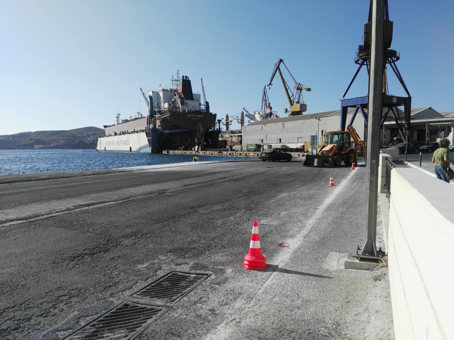 “Το έργο είναι μεγάλης κλίμακας και εμπεριέχει επισκευή των υποστέγων, του ασφαλτοτάπητα και του περίφρακτου χώρου του λιμένα, καθώς και την επισκευή του δικτύου των ομβρίων υδάτων καθώς και των κρηπιδωμάτων που είναι και το πιο δύσκολο κομμάτι του έργου, δηλαδή το κομμάτι που δένουν τα πλοία”.