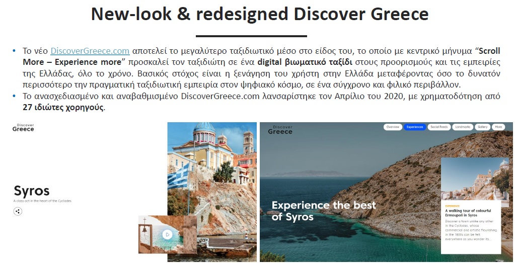 DiscoverGreece.com Campaign: Α. Προβολή της “Best of” σελίδας που θα δημιουργηθεί στην Homepage για 2 εβδομάδες, σε Highlight ενότητα που προτείνει επιλεγμένες εμπειρίες και προορισμούς στο ταξιδιωτικό κοινό. Β. Προβολή σε εσωτερικές σελίδες (προορισμούς & θεματικές ενότητες): Προώθηση του travel αφιερώματος, σε προορισμούς και θεματικές ενότητες του Discovergreece.com, σχετικές με το τουριστικό προϊόν της Σύρου.
