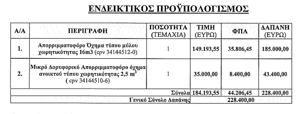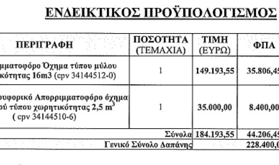 Συμπερασματικά, όπως διευκρίνισε, το συνολικό κόστος αυτών των δύο οχημάτων εκτιμάται στις 228.400 ευρώ και καλύπτεται κατά το μέρος των 150.000 ευρώ από τον ΦΙΛΟΔΗΜΟ.