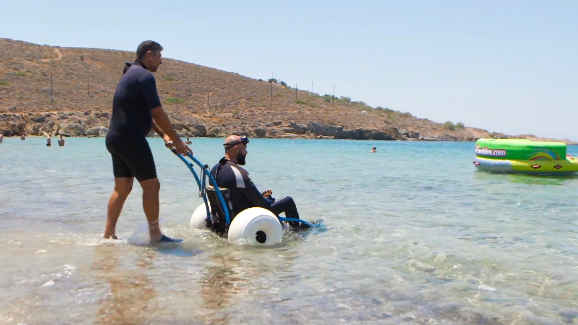 Στο βίντεο- τα γυρίσματα του οποίου πραγματοποιήθηκαν από 18-21 Ιουλίου στο νησί μας- συμμετέχουν οι παραολυμπιονίκες κ. Μάκης Καλαράς και κ. Αλέξανδρος Ταξιλδάρης, η αθλήτρια κα Γεωργία Καλτσή καθώς και ο κ. Νίκος Ρούσσος, οι οποίοι αποδέχτηκαν την πρόσκληση να «εξερευνήσουν» την προσβασιμότητα της Σύρου.