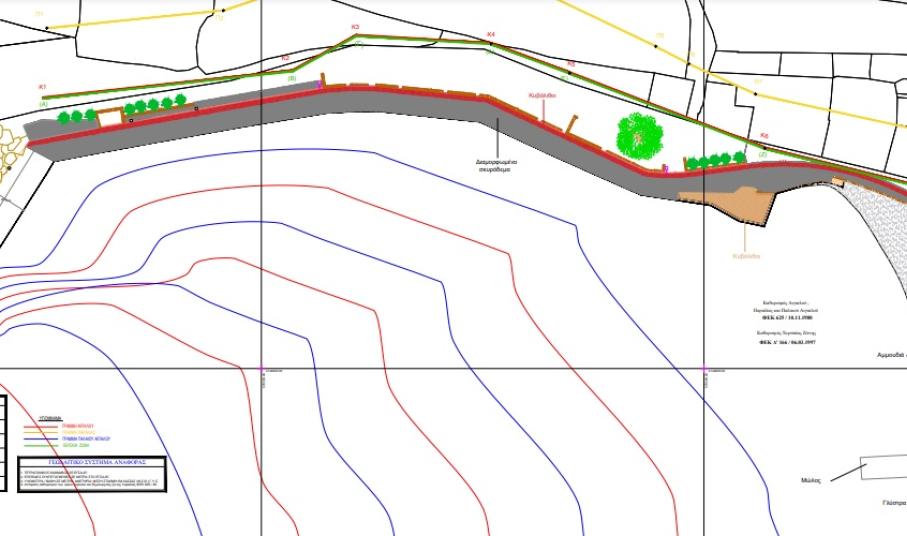 Επιπλέον, βάση του σχεδίου της Τεχνικής Υπηρεσίας του Λιμενικού Ταμείου Σύρου, είχε γνωστοποιηθεί πως, “Το τμήμα του διαδρόμου για τους πεζούς, θα είναι από κυβόλιθους, στο χρώμα μάλιστα που είναι και τα άλλα πεζοδρόμια της παραλιακής ζώνης του Κινίου” ενώ είχε διευκρινισθεί πως στο υπόλοιπο τμήμα θα γίνει νέα επίστρωση από σκυρόδεμα.