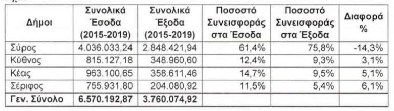 Διευκρινίζεται πως ο πίνακας που συνοδεύει το άρθρο συμπεριλήφθηκε στις επιστολές των Δήμων Κέας και Σερίφου.