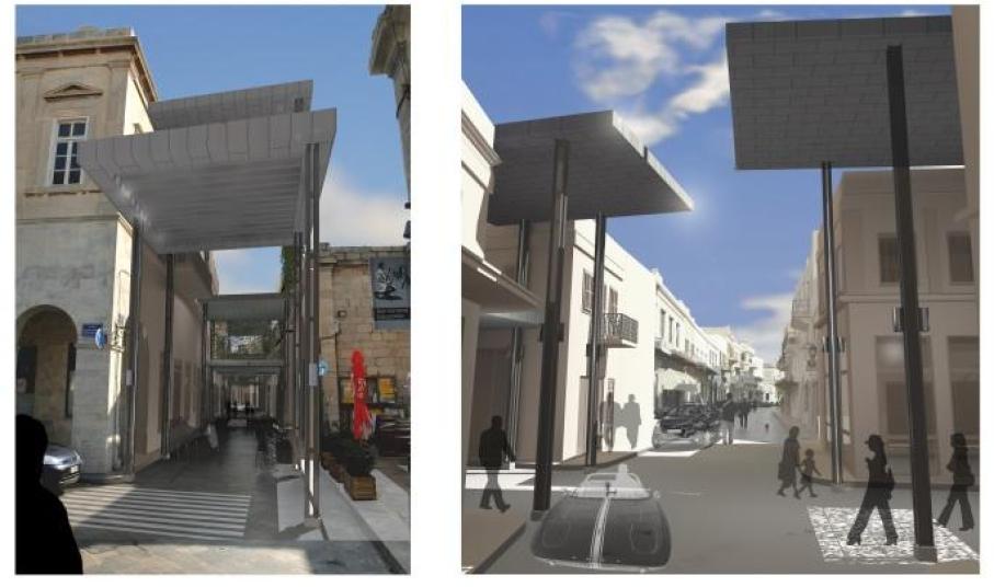 Στο πλαίσιο του ρεπορτάζ αξίζει να επισημανθεί πως η προμελέτη των στεγάστρων είναι του μελετητή Τζανέτου Κανελλόπουλου και η παρουσίασή της είχε γίνει στην αίθουσα του Δημοτικού Συμβουλίου το 2016 παρουσία του Εμπορικού Συλλόγου.