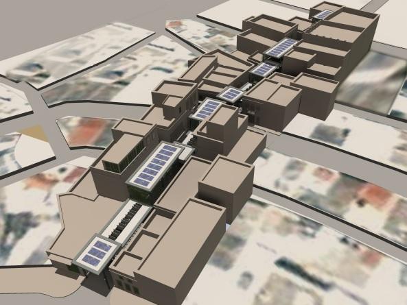 Σύμφωνα με το περιεχόμενο της προμελέτης για το τμήμα των στεγάστρων για το οποίο θα πρέπει άμεσα να αποφασίσει το Υπουργείο Πολιτισμού αν θα προωθηθεί ή όχι, προβλέπονται τα ακόλουθα: “α. Το στέγαστρο θα αποτελείται από 14 επίπεδα στέγαστρα τα οποία τοποθετούνται σε διάφορα ύψη και επίπεδα κατά μήκος της οδού, προσαρμοζόμενα κάθε φορά στις απαιτήσεις των όψεων των κτιρίων. β. Στηρίζεται σε απλές διατομές μορφοσιδήρου UPN μικρής διατομής. γ. Η κατασκευή είναι αυτοφερόμενη και σε κανένα σημείο δεν ακουμπά στα κτίρια. δ. Καλύπτεται στην οροφή και το περιθώριό του με φύλλα τιτανιούχου ψευδαργύρου (διακριτική και εξευγενισμένη υπόμνηση των τσίγκινων επίτοιχων στεγάστρων). ε. Στα 4 χαμηλότερα τμήματα του στεγάστρου προβλέπεται επιμήκης παραλληλόγραμμος φεγγίτης για τον επαρκή φωτισμό της οδού, ο οποίος σκιάζεται από μεγάλες κατακόρυφες περσίδες. στ. Σε διάφορα σημεία προβλέπεται αναρτημένη φύτευση, η οποία φιλτράρει το φως δημιουργώντας δροσερή ατμόσφαιρα και ανάλαφρο φωτισμό, ενώ ταυτόχρονα προσθέτει μικροκλίμα πρασίνου στην περιοχή. ζ. Στο βόρειο άκρο επί της οδού Χίου και πλ. Μιαούλη το πρώτο στέγαστρο είναι μια περσιδωτή κατασκευή, η οποία έχει σαν στόχο να σηματοδοτήσει την αρχή του στεγάστρου και να δημιουργήσει μια περιοχή μερικής σκίασης στην αρχή της αγοράς , για την ομαλή οπτική μετάβαση από το φως στη σκιά. η. Στην οδό Πρωίου το στέγαστρο διακόπτεται. Τα δύο τμήματα του στεγάστρου συναντιόνται και σε κάποιο ύψος το ένα προσεγγίζει το άλλο, χωρίς όμως να το φτάνει εντελώς. θ. Τέλος, στα υψηλότερα στέγαστρα που έχουν επαρκή ηλιασμό προβλέπονται φωτοβολταϊκά πάνελ για τον φωτισμό του ίδιου του στεγάστρου και όχι μόνο”.