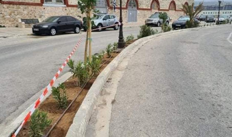 Πριν από δύο ημέρες ολοκληρώθηκε η δενδροφύτευση των παρτεριών ανάμεσα στα σημεία στάθμευσης και διέλευσης των οχημάτων. Ειδικότερα, απομακρύνθηκαν τα ξερά εδώ και χρόνια δέντρα και φυτά και φροντίστηκαν τα ήδη υπάρχοντα.