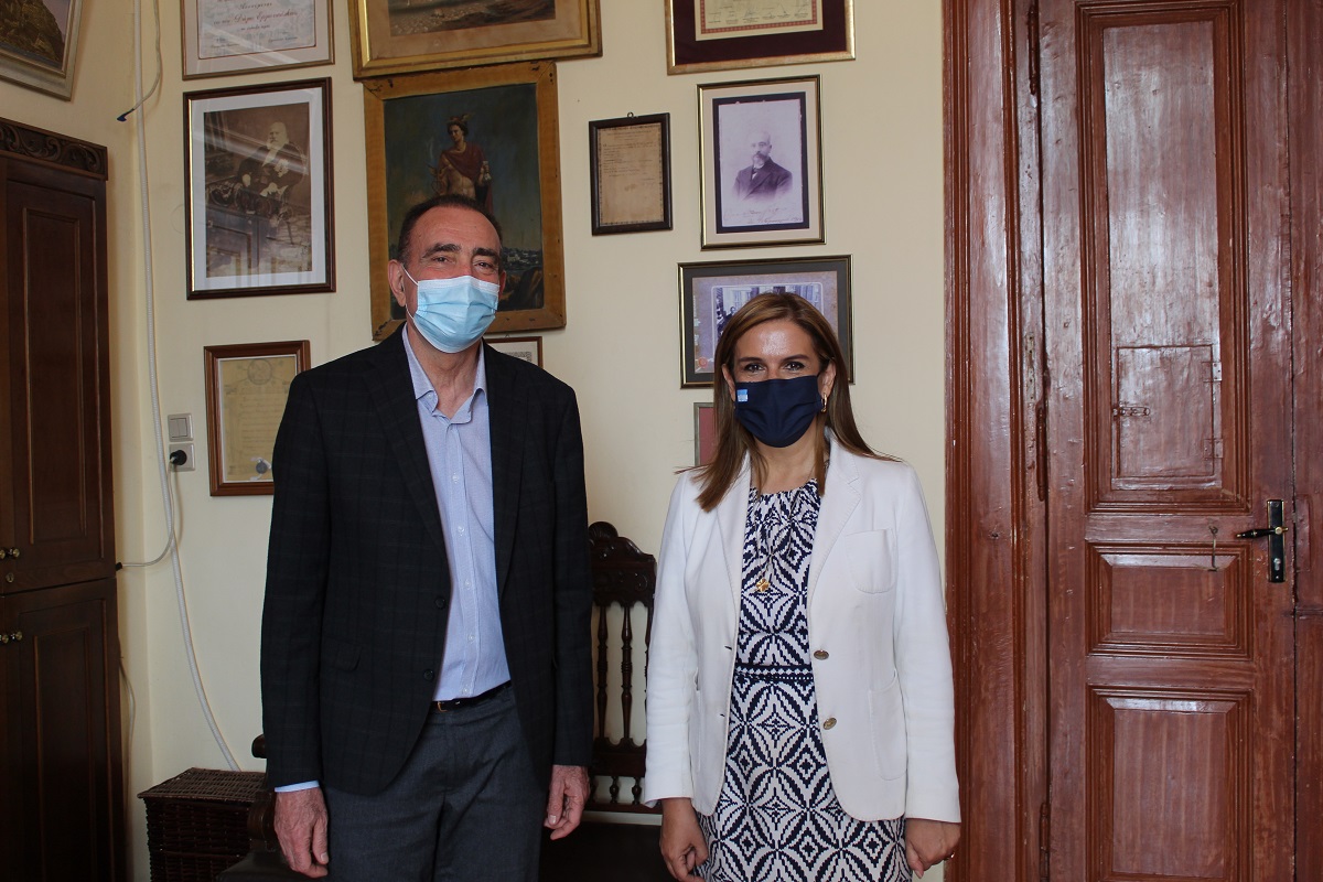 Την Υφυπουργό Υγείας κα Ζωή Ράπτη υποδέχθηκε σήμερα, Πέμπτη 6 Μαΐου 2021, στο Δημαρχιακό Μέγαρο, ο Δήμαρχος Σύρου – Ερμούπολης κ. Νικόλαος Λειβαδάρας, παρουσία του Βουλευτή Κυκλάδων κ. Φίλιππου Φόρτωμα και του Διοικητή του Γενικού Νοσοκομείου Σύρου κ. Μιχάλη Ζουλουφού, στο πλαίσιο προγραμματισμένων συναντήσεων με τοπικούς φορείς.