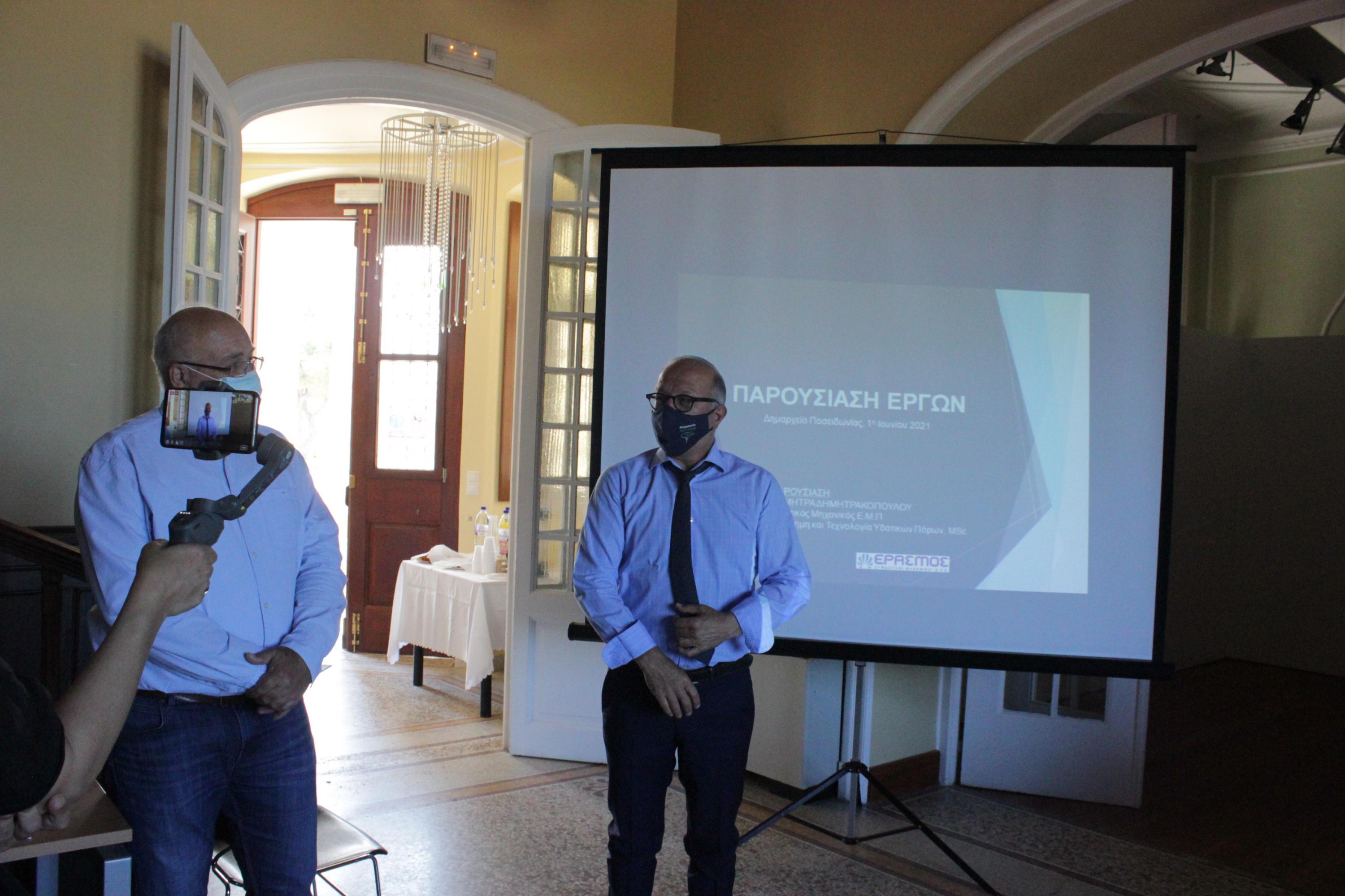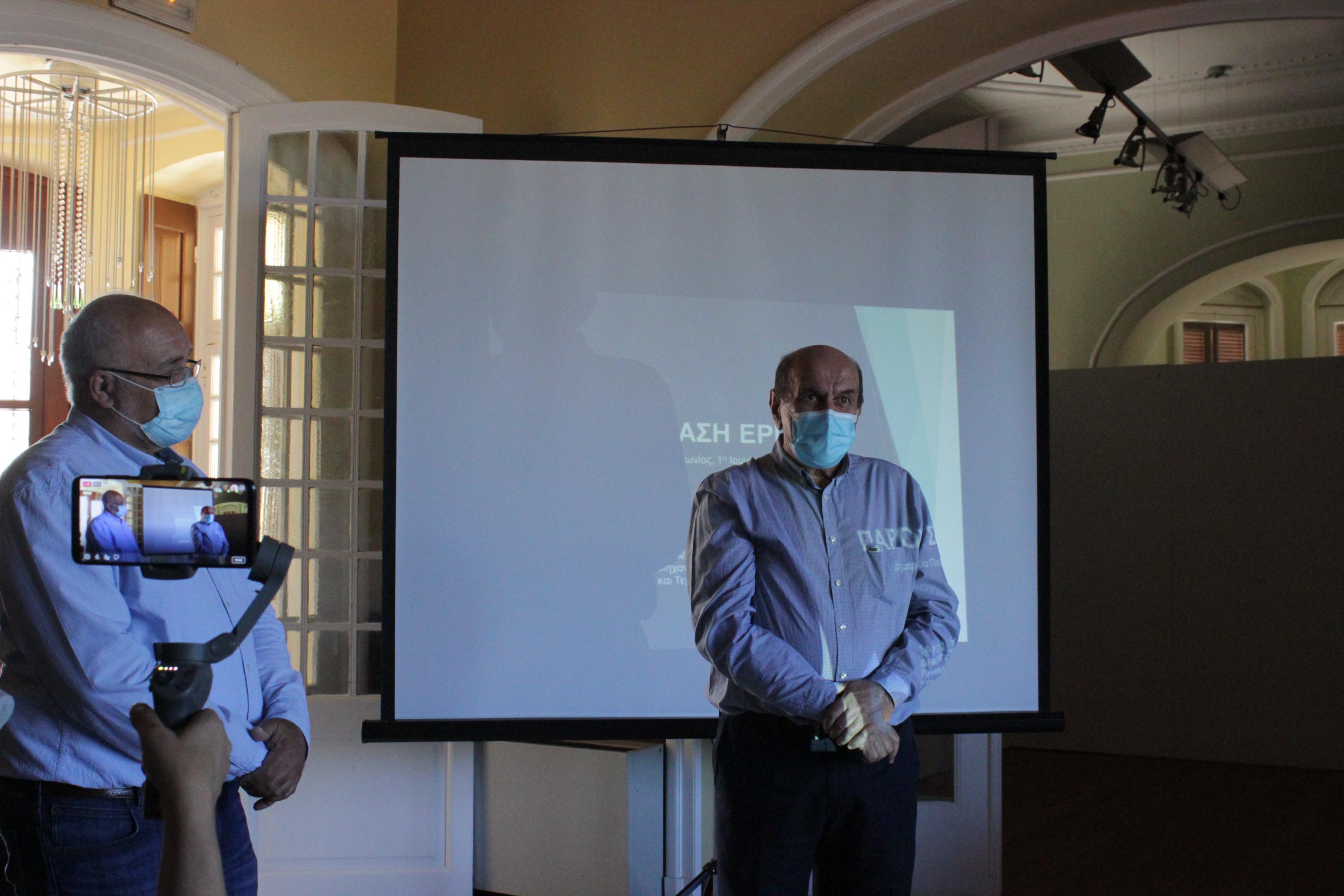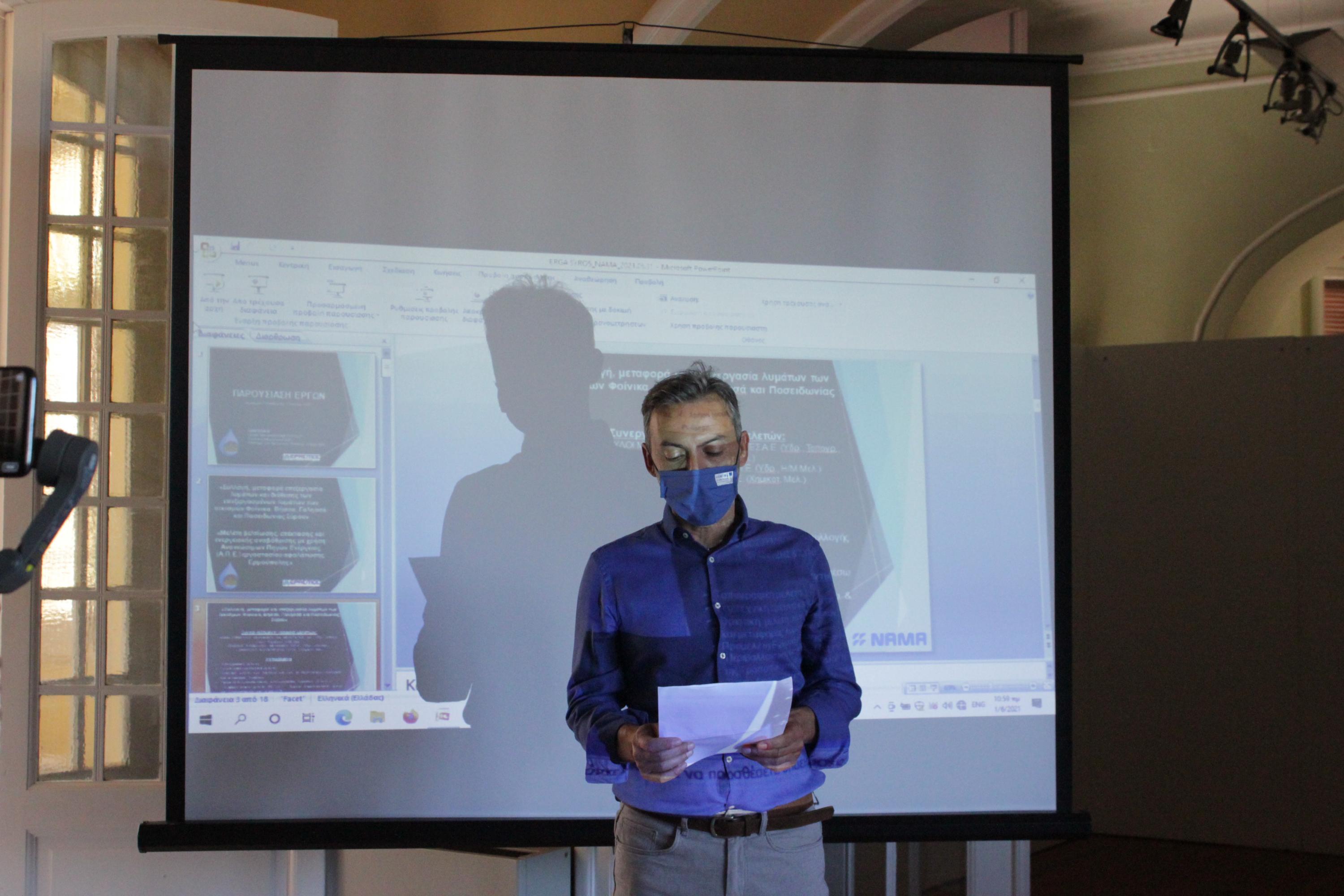 Η παρουσίαση των μελετών έγινε στην έπαυλη Τσιροπινά στην Ποσειδωνία παρουσία του Δημάρχου, Νίκου Λειβαδάρα, του Αντιπεριφερειάρχη Κυκλάδων, Γιώργου Λεονταρίτη και προέδρων Κοινοτήτων, ενώ συμμετείχαν επίσης, η δημοτική σύμβουλος Αγγελική Πρίντεζη με χωρική αρμοδιότητα την Ποσειδωνία, καθώς και ο Διευθυντης της ΔΕΥΑΣ, Γιώργος Βακόνδιος.