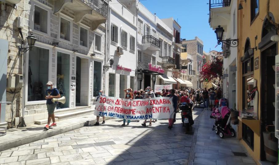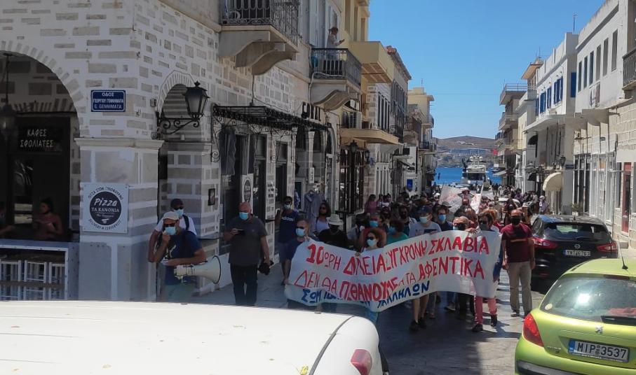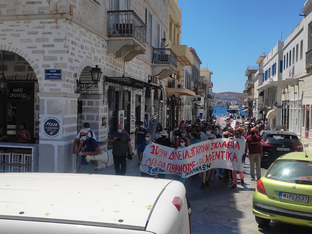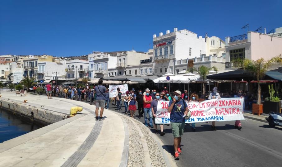 Στο πλαίσιο της σημερινής πανελλαδικής, πανεργατικής απεργίας, τα Σωματεία εργαζομένων της Σύρου έδωσαν δυναμικά το "παρών", διαμαρτυρόμενοι ενάντια στο σχέδιο νόμου της κυβέρνησης, αναφορικά με τα εργασιακά.