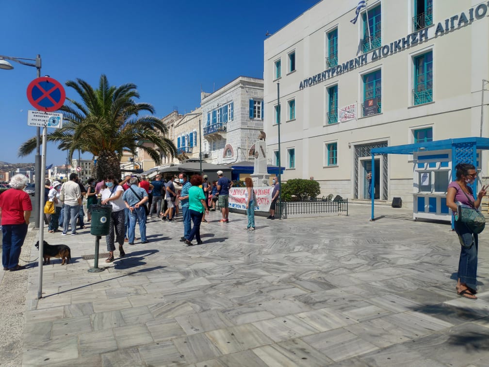 Η κινητοποίηση είχε έναρξη στις 10:30 το πρωί έξω από τα γραφεία της Αποκεντρωμένης Διοίκησης Αιγαίου, ενώ στη συνέχεια, οι συμμετέχοντες πραγματοποίησαν πορεία διαμαρτυρίας, η οποία κινήθηκε παραλιακά, στην Ακτή Παπάγου, κατόπιν διήλθε από τις οδούς Πρωτοπαπαδάκη και Θυμάτων Σπερχειού και κατέληξε, μέσω της οδού Ελ. Βενιζέλου (π. Ερμού) στην πλατεία Μιαούλη.