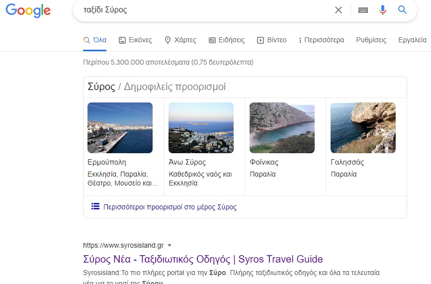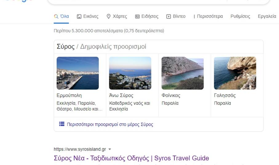 Συγκεκριμένα, το portal για τον τουρισμό θα έχει τα εξής πρόσθετα χαρακτηριστικά: α. Παρουσίαση άμεσης και αξιόπιστης ενημέρωσης για θέματα τουρισμού με βάση περιεχόμενο του Δήμου. β. Επικαιροποίηση υφιστάμενου περιεχομένου και προσθήκη νέου σε συνεργασία με το Δήμο. γ. Παρουσίαση σημείων ενδιαφέροντος σε χάρτες (point of interests). δ. Προσθήκη Event calendar. ε. Συσσώρευση περιεχομένου (aggregation) από τρίτα μέσα social media με λέξεις κλειδιά π.χ syros. στ. Έλεγχος για τη συμβατότητα με τις τελευταίες εκδόσεις των browsers, έλεγχος για συμβατότητα με φορητές συσκευές, αναβάθμιση ή και αντικατάσταση των plugins τρίτων προμηθευτών , έλεγχος SEO στις σελίδες και προσθήκη νέων λέξεων κλειδιών, κλπ.. ζ. Σύνδεση της ιστοσελίδας του Δήμου, με σελίδες του Facebook, twitter, YouTube του Δήμου. η. Σε κάθε σελίδα του portal θα εμφανίζονται οι συνδέσεις για τα ανωτέρω social media (social media buttons). θ. Σε κάθε άρθρο του portal θα υπάρχει η δυνατότητα στον χρήστη να το προωθεί στα social media. ι. Λειτουργία εγγραφής χρηστών με email για λήψη ενημερωτικού δελτίου από το Δήμο (newsletter). κ. Hosting του portal για ένα έτος.”.