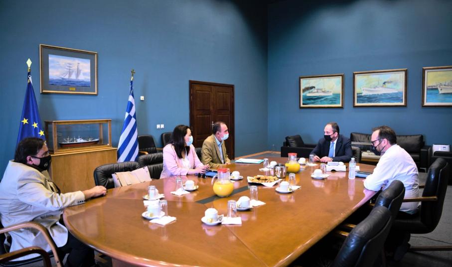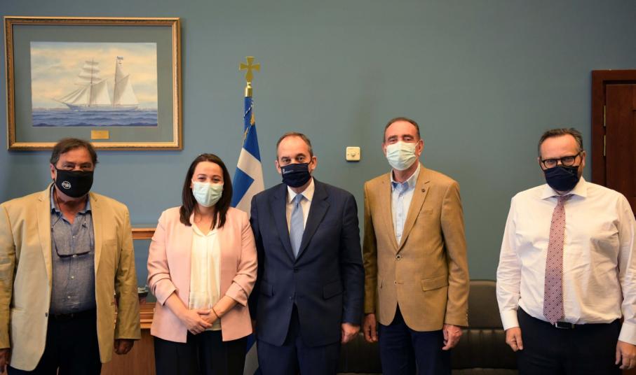 Προγραμματισμένη συνάντηση πραγματοποίησε χθες, Πέμπτη 24 Ιουνίου 2021, στο Υπουργείο Ναυτιλίας και Νησιωτικής Πολιτικής, ο Δήμαρχος Σύρου – Ερμούπολης κ. Νικόλαος Λειβαδάρας με τον Υπουργό Ναυτιλίας και Νησιωτικής Πολιτικής κ. Ιωάννη Πλακιωτάκη και τον Γενικό Γραμματέα Λιμένων, Λιμενικής Πολιτικής και Ναυτιλιακών Επενδύσεων κ. Ευάγγελο Κυριαζόπουλο, παρουσία της Προέδρου του Λιμενικού Ταμείου Σύρου κας Κανδιώς Μαραγκού και του Αντιδημάρχου Τεχνικών Υπηρεσιών κ. Μηνά Αληφραγκή.