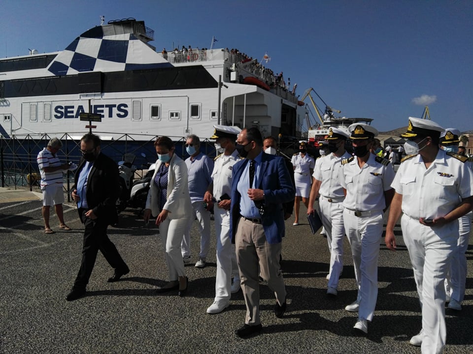 Στις σύντομες δηλώσεις του στο λιμάνι, ο Υπουργός τόνισε πως η επίσκεψή του στο νησί πραγματοποιείται στο πλαίσιο επίβλεψης των αυστηρότατων ελέγχων, για την τήρηση των προβλεπόμενων μέτρων και τα απαραίτητα δικαιολογητικά, που πραγματοποιούνται κατά την επιβίβαση και αποβίβαση των επιβατών στα πλοία.