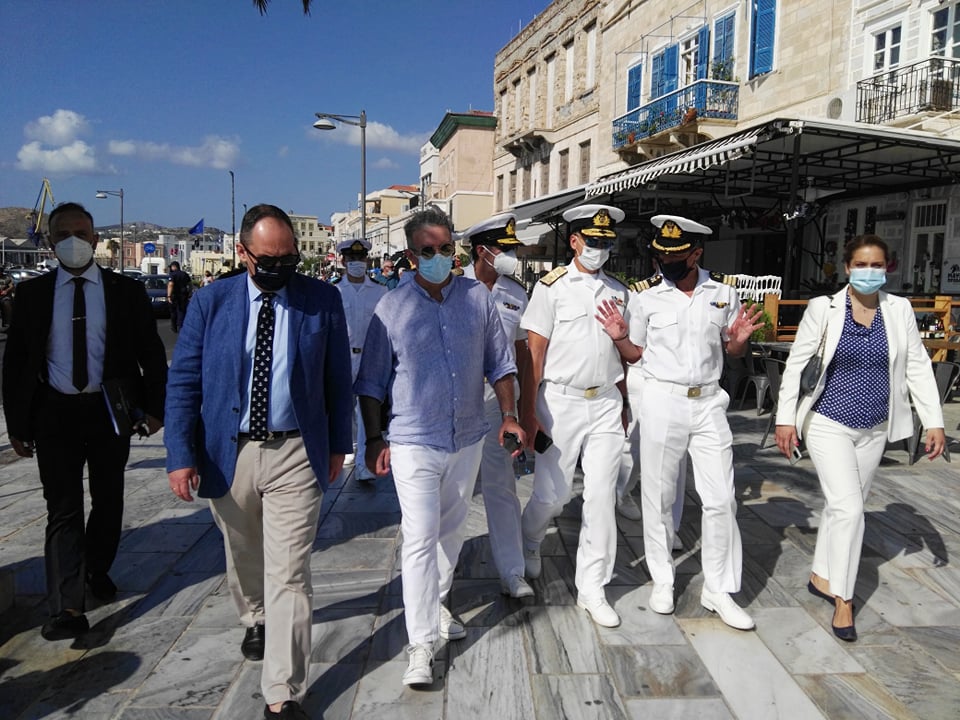 Ο Υπουργός, συνοδεία των στελεχών της Λιμενικής Αρχής, κατευθύνθηκε με τα πόδια προς την Περιφέρεια Νοτίου Αιγαίου, όπου πραγματοποίησε συνάντηση με τον Αντιπεριφερειάρχη Κυκλάδων και τον Δήμαρχο Σύρου - Ερμούπολης.
