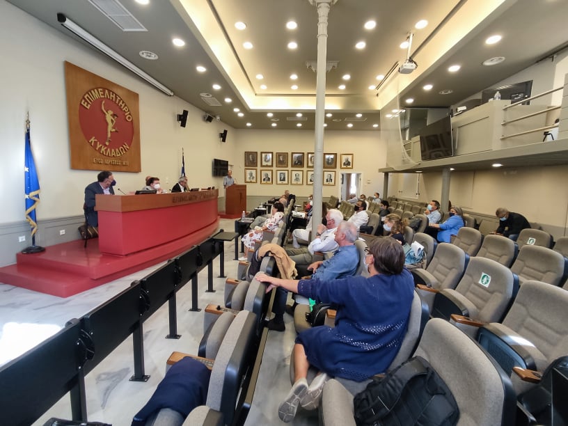 Επιπλέον, θα μπορούσαμε ειδικά για τα θέματα των Κυκλάδων να πούμε ότι κάθε έξι εβδομάδες θα μπορεί να συνεδριάζει το Κεντρικό Συμβούλιο Νεωτέρων Μνημείων μόνον με θέματα που αφορούν τη Σύρο και τον νομό”.