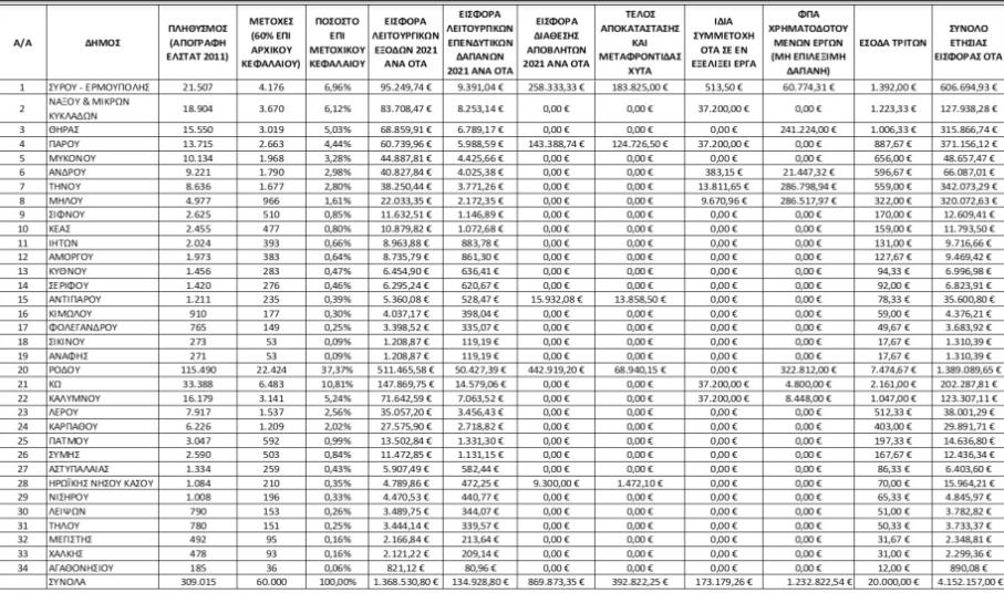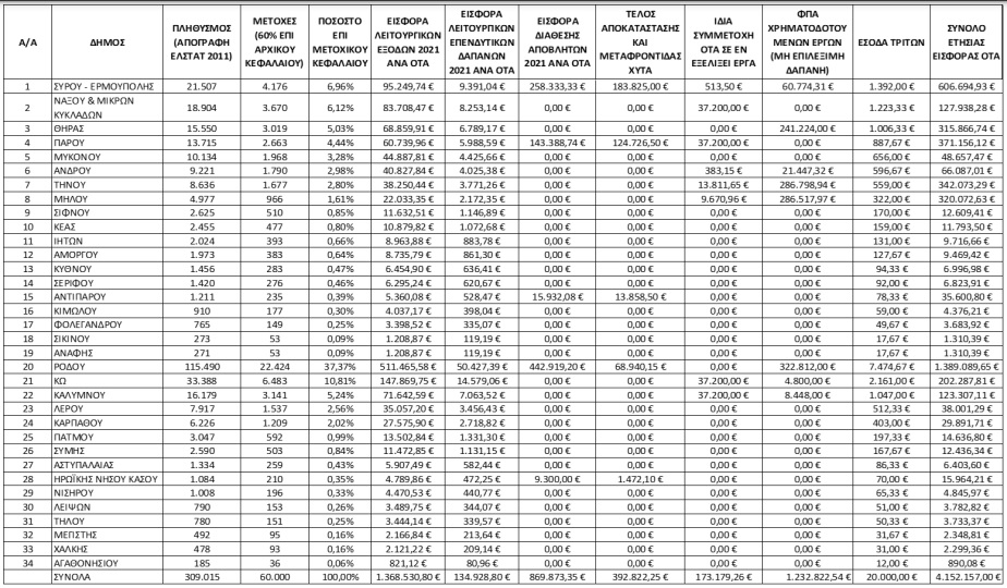 Σημειώνεται πως για κάθε νησί του Ν. Αιγαίου τα ποσά για το έτος 2021 περιλαμβάνονται στον πίνακα που συνοδεύει το ρεπορτάζ.