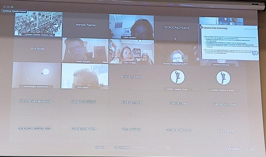 Χθες και σήμερα, στο Επιμελητήριο Κυκλάδων πραγματοποιήθηκε και πραγματοποιείται η σχετική διαβούλευση με όλες τις εμπλεκόμενες και ενδιαφερόμενες πλευρές - με τον τουρισμό – στη Σύρο, προκειμένου να συζητηθεί αναλυτικά το σχέδιο διαχείρισης και προώθησης του προορισμού της πρωτεύουσας των Κυκλάδων, με αποτέλεσμα ο τόπος να ξεκινήσει βήμα – βήμα την υλοποίησή του.