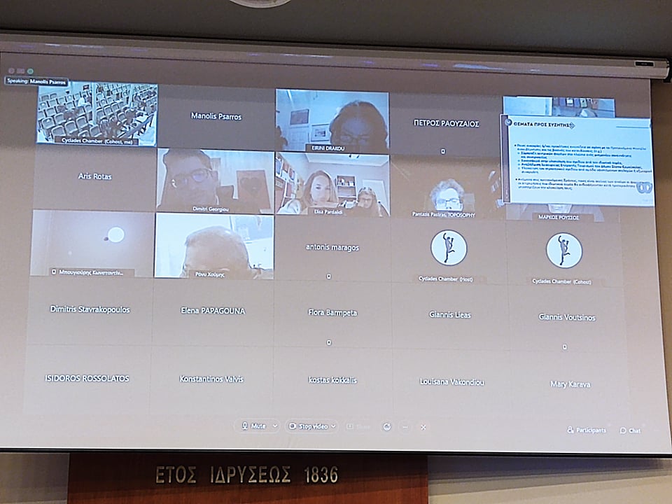Σημειώνεται πως μεταξύ άλλων, στο Επιμελητήριο βρέθηκαν ο Δήμαρχος, Νίκος Λειβαδάρας, ο Αντιδήμαρχος Τουρισμού, Παναγιώτης Κουταβάς, ο πρόεδρος της Τερψιχόρης, Αντώνης Χατζαντώνης, ο πρόεδρος του Εμπορικού Συλλόγου Σύρου, Βαγγέλης Αλεξανδρίδης και ο επικεφαλής της μείζονος μειοψηφίας, Αλέξης Αθανασίου.