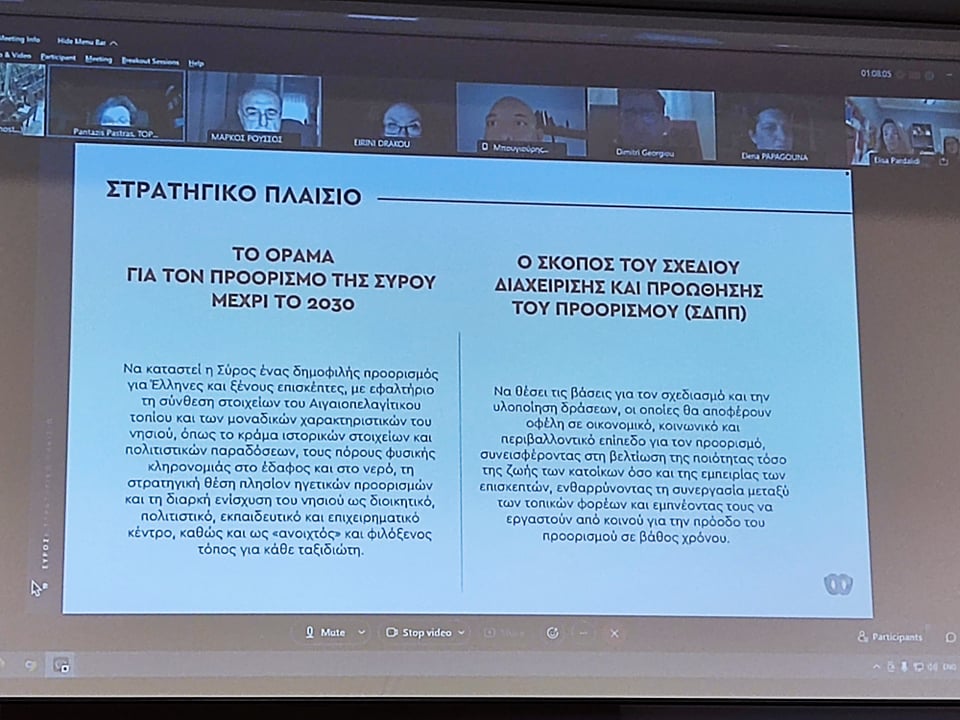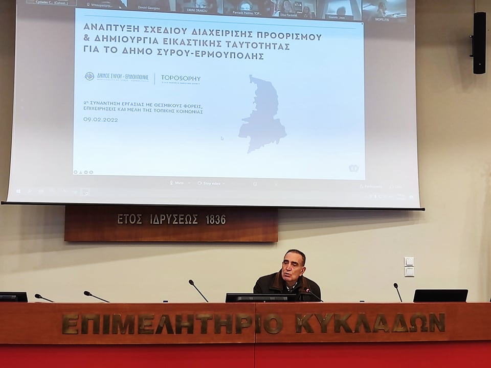 Με έναν στρατηγικό σχεδιασμό πολύ υψηλού επιπέδου για την τουριστική ανάπτυξη της Σύρου έρχονται αντιμέτωποι οι επιχειρηματίες του τόπου, ο Δήμος Σύρου – Ερμούπολης, οι εμπλεκόμενοι φορείς όπως το Επιμελητήριο Κυκλάδων, καθώς και όλες οι άμεσα ή και έμμεσα ενδιαφερόμενες πλευρές του νησιού, ο οποίος φέρει την υπογραφή, την εμπειρία και τη γνώση της Toposophy και αφορά σε ένα μελετημένο τουριστικό σχέδιο για τα επόμενα έτη.