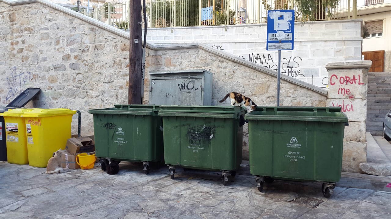 • να μην ταΐζονται αδέσποτα με υπολείμματα τροφών χύδην δίπλα στους κάδους.