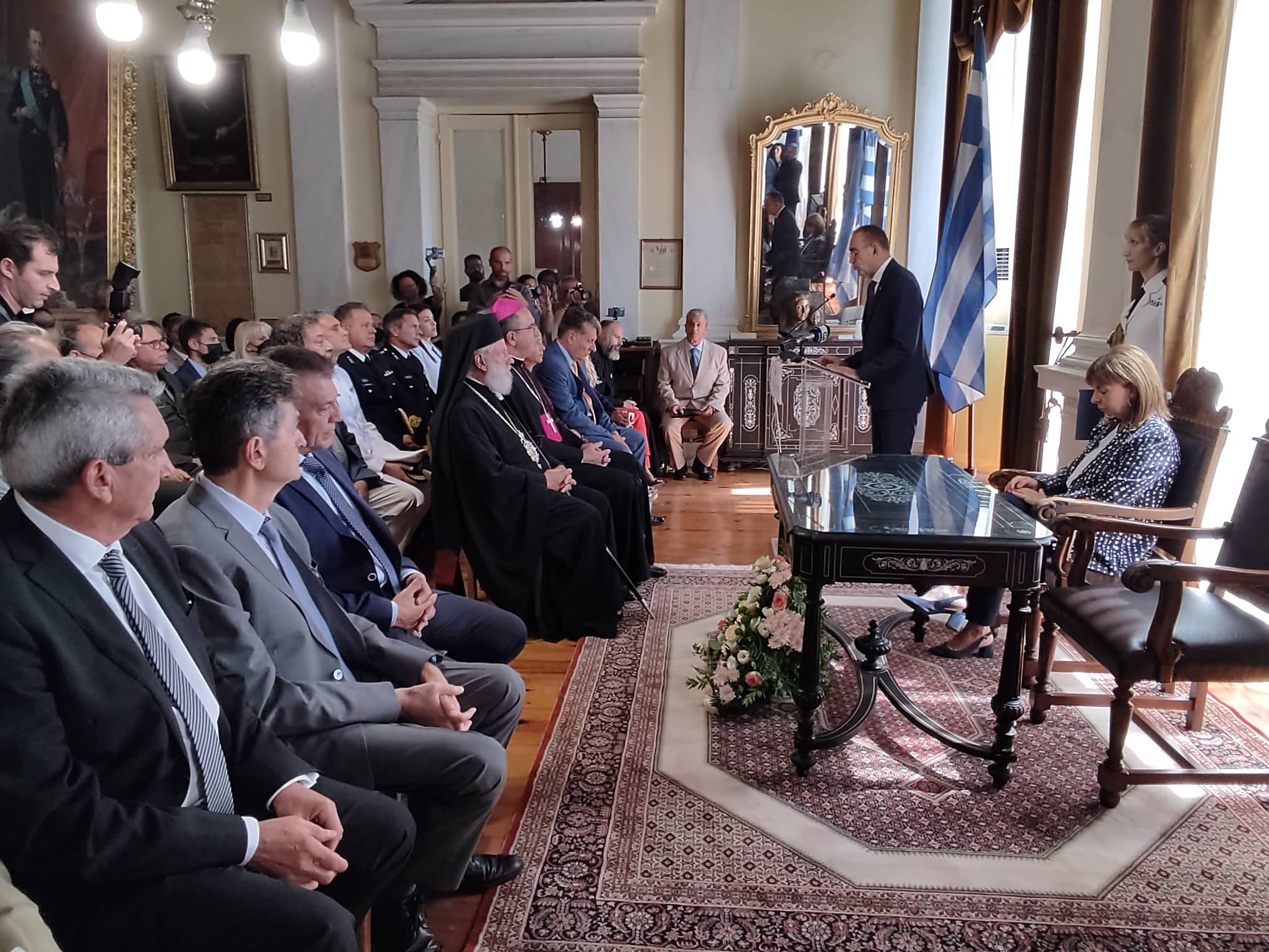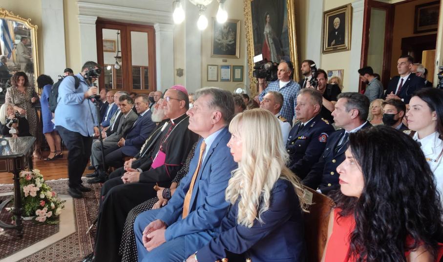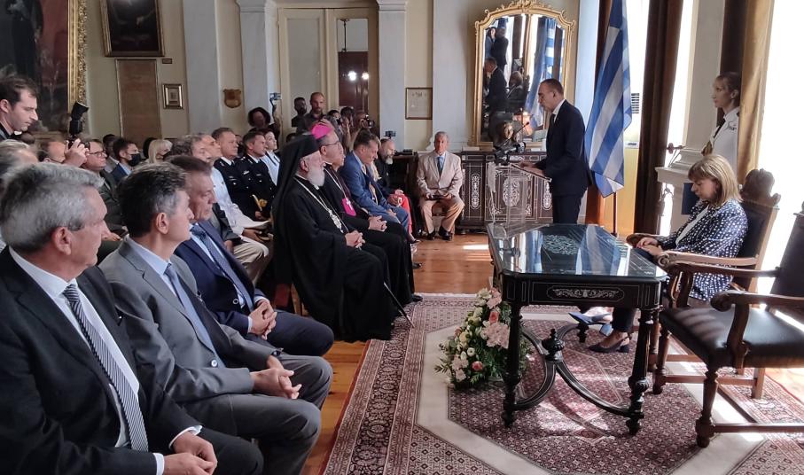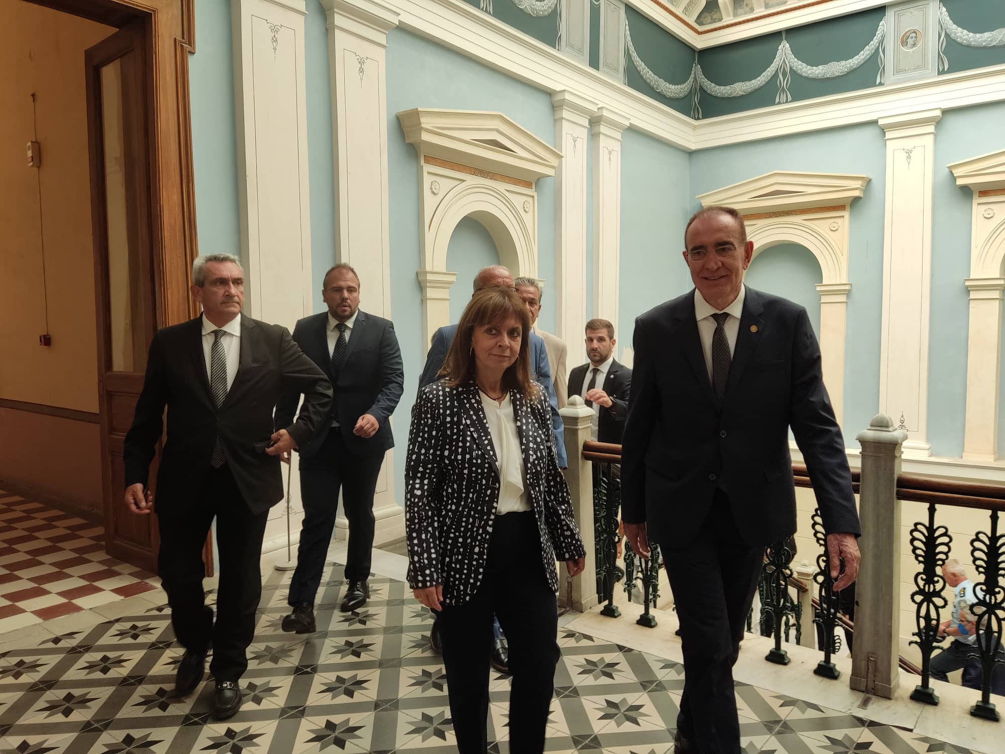 “Στο πρόσωπό της εκφράζεται το πνεύμα ενότητας και ομοψυχίας του ελληνικού έθνους καθώς και ο βαθύτατος σεβασμός προς τα θεμελιώδη ανθρώπινα δικαιώματα και τις δημοκρατικές αρχές, όπως η ισονομία και η ισότητα, αρχές τις οποίες προασπίστηκε με σθένος, συνέπεια και ευθυκρισία, μέσω του θεσμικού της ρόλου στο Δικαστικό Σώμα, το οποίο υπηρέτησε επί σειρά ετών, και συνεχίζει να προασπίζεται από το κορυφαίο αξίωμα της Προέδρου της Ελληνικής Δημοκρατίας” ανέφερε στην ομιλία του ο Δήμαρχος μεταφέροντας την ομόφωνη απόφαση του Δημοτικού Συμβουλίου, προσφέροντας ακολούθως στην ίδια την τιμητική πλακέτα.