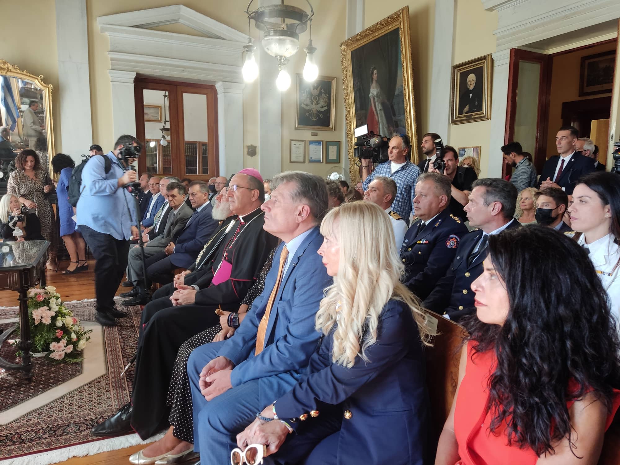 Την κα Σακελλαροπούλου υποδέχθηκε ο Δήμαρχος Σύρου – Ερμούπολης, Νίκος Λειβαδάρας στην είσοδο του Δημαρχείου, ενώ την ανακήρυξή της παρακολούθησαν ο Σεβασμιώτατος Μητροπολίτης Σύρου, κ. Δωρόθεος Β΄, ο Καθολικός Επίσκοπος Σύρου Σεβ. π. Πέτρος Στεφάνου, εκπρόσωποι της κυβέρνησης και συγκεκριμένα ο Γιάννης Βρούτσης, εκπρόσωποι του Δικαστικού Σώματος, των Σωμάτων Ασφαλείας και του Πανεπιστημίου Αιγαίου, όπως και αιρετοί σύμβουλοι.