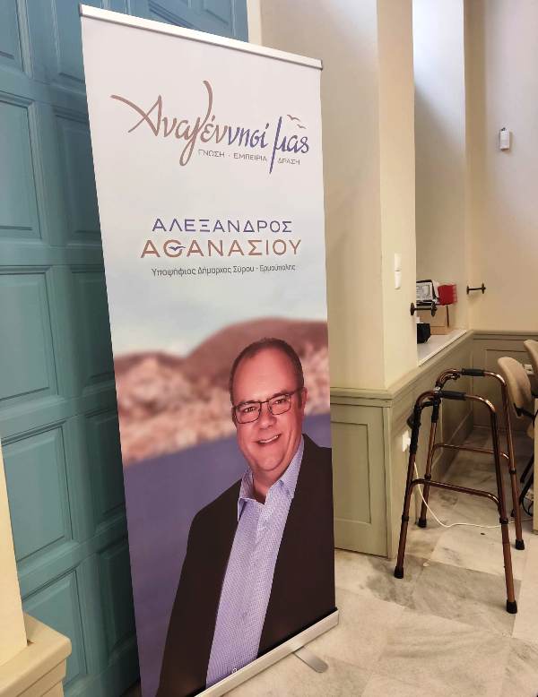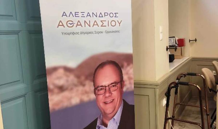 Πλαισιωμένος από υποψηφίους και φίλους του συνδυασμού του, ο Αλέξης Αθανασίου αναφέρθηκε αναλυτικά στην ιδρυτική διακήρυξη της παράταξής του, μέσω της οποίας κάνει γνωστές τις βασικές αρχές που θέτει για τον Δήμο Σύρου – Ερμούπολης και το νησί, την επόμενη αυτοδιοικητική περίοδο.
