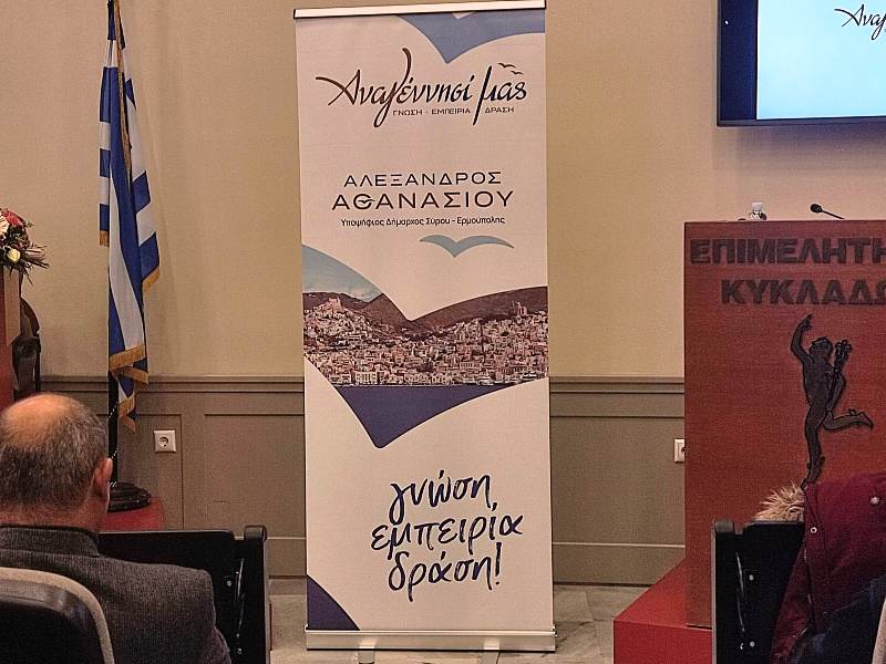 Το όνομα του νέου συνδυασμού “Αναγέννησί μας”, με τον οποίον ο Αλέξης Αθανασίου διεκδικεί στις επερχόμενες αυτοδιοικητικές τον δημαρχιακό θώκο, παρουσίασε σήμερα σε εκδήλωση που πραγματοποιήθηκε στο Επιμελητήριο Κυκλάδων.