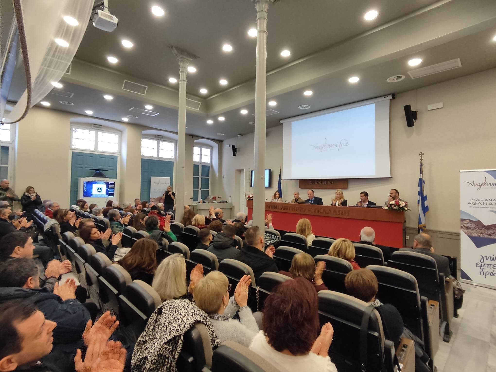 Στην αίθουσα εκδηλώσεων παρέστησαν πολλά μέλη της τοπικής κοινωνίας, δείχνοντας τη στήριξή τους στον Αλέξη Αθανασίου, τον οποίον κατ΄ επανάληψη χειροκρότησαν θερμά.