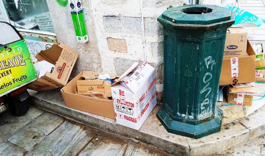 Την ευθύνη που της αναλογεί αναφορικά με την κατάσταση των εμπορικών δρόμων της Ερμούπολης οφείλει εκ θέσεως να αναλάβει η αντιδήμαρχος Καθαριότητας, Αγγελική Πρίντεζη, η οποία απέναντι σε εικόνες με “λοφίσκους” από κούτες και χαρτοκιβώτια, καλείται να μην κάνει τα στραβά μάτια και να πάρει αυστηρότερα μέτρα, ενόψει και Πάσχα.