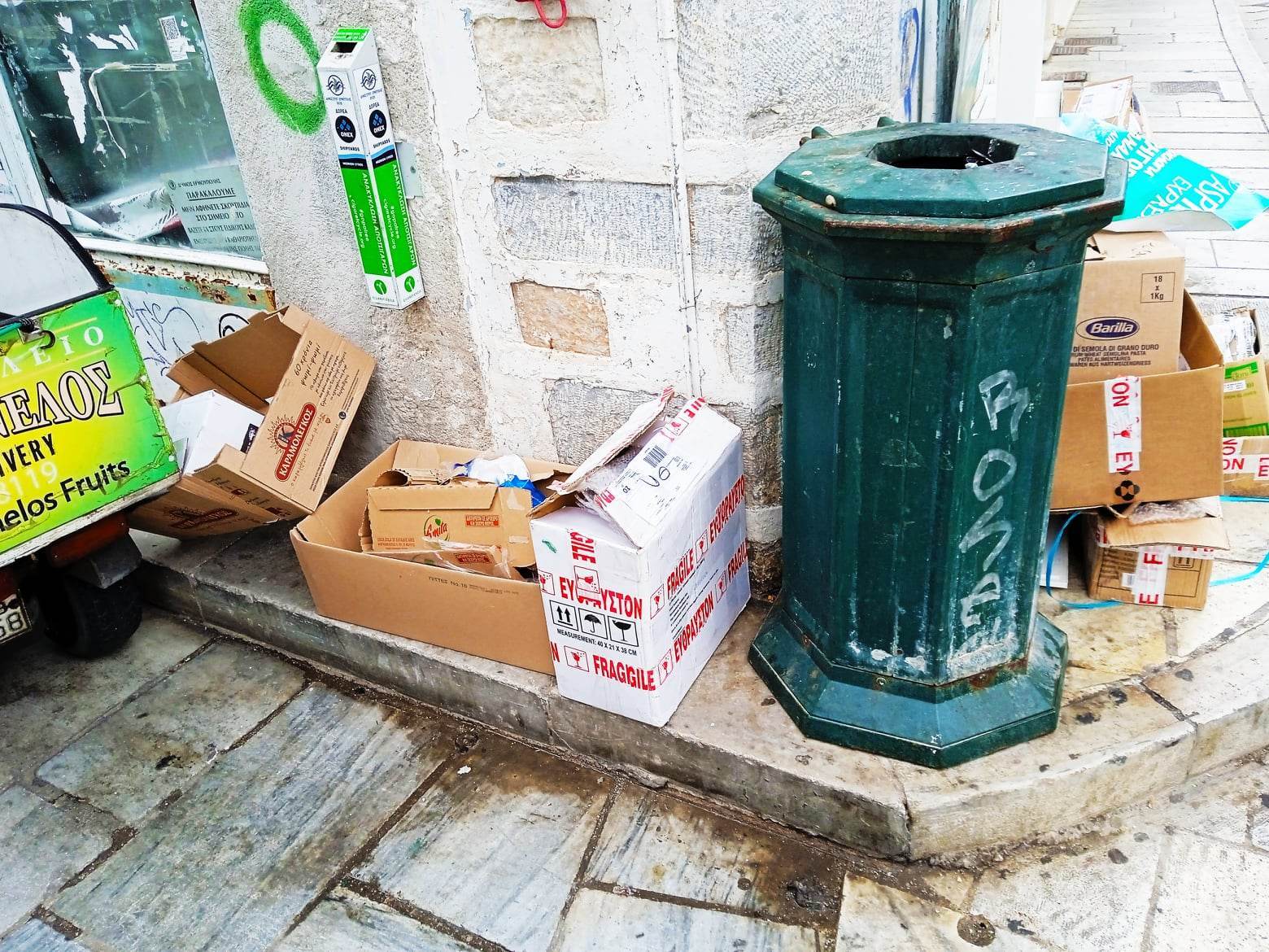Η κατάσταση στο ιστορικό κέντρο σχετικά με ορισμένους επιχειρηματίες που συγκεντρώνουν στους δημοτικούς δρόμους μεγάλες ποσότητες ανακυκλώσιμων υλικών σε ώρες που δεν πραγματοποιείται αποκομιδή, έρχεται και πάλι στο προσκήνιο, αφού τα μικρά “ βουνά” από κούτες, υποβαθμίζουν το γενικότερο τοπίο της πόλης, καθώς δυστυχώς, διασκορπίζονται σε αρκετά σημεία μικρών και μεγάλων οδών.