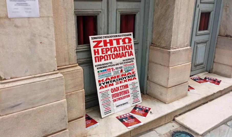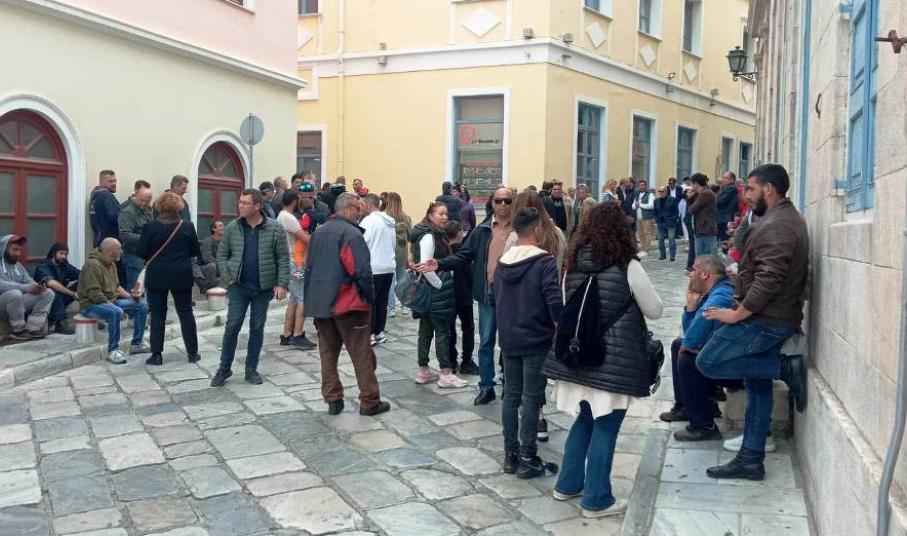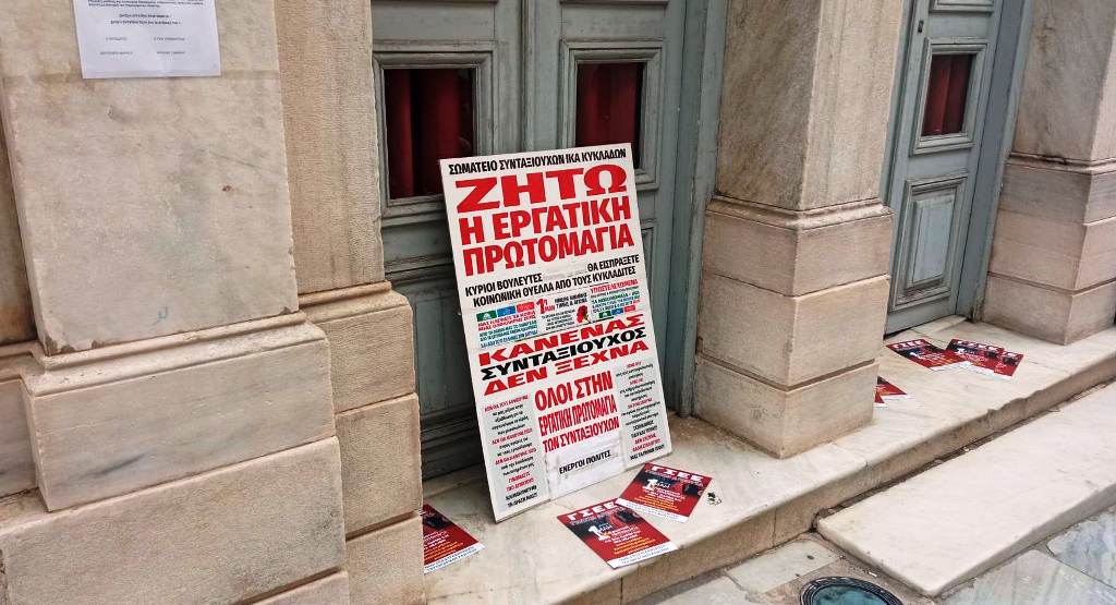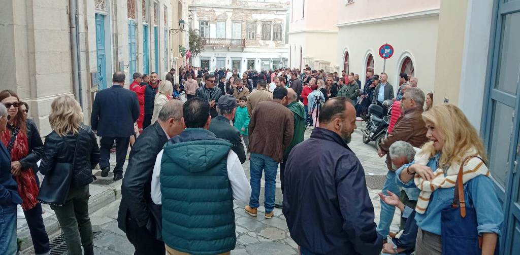 Η πρώτη συγκέντρωση έλαβε χώρα έξω από το Εργατικό Κέντρο Κυκλάδων, παρουσία εργαζομένων από το Νεώριο, εκπροσώπων από συλλόγους συνταξιούχων, αλλά και υποψήφιων βουλευτών και πολιτικών από την τοπική αυτοδιοίκηση.