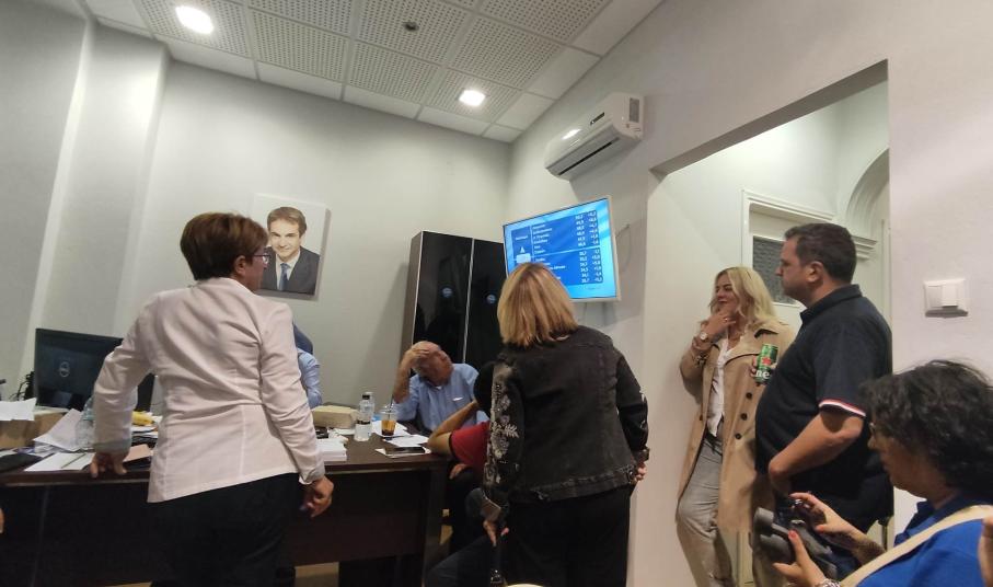 Μεταξύ άλλων, στα γραφεία της Νέας Δημοκρατίας, εκτός από τον πρόεδρο της ΔΕΕΠ Κυκλάδων, Χρήστο Καφτηράνη και τον πρόεδρο της τοπικής οργάνωσης του κόμματος, ήταν και η υποψήφια βουλευτής Κυκλάδων, Ανθή Χαλκιά.