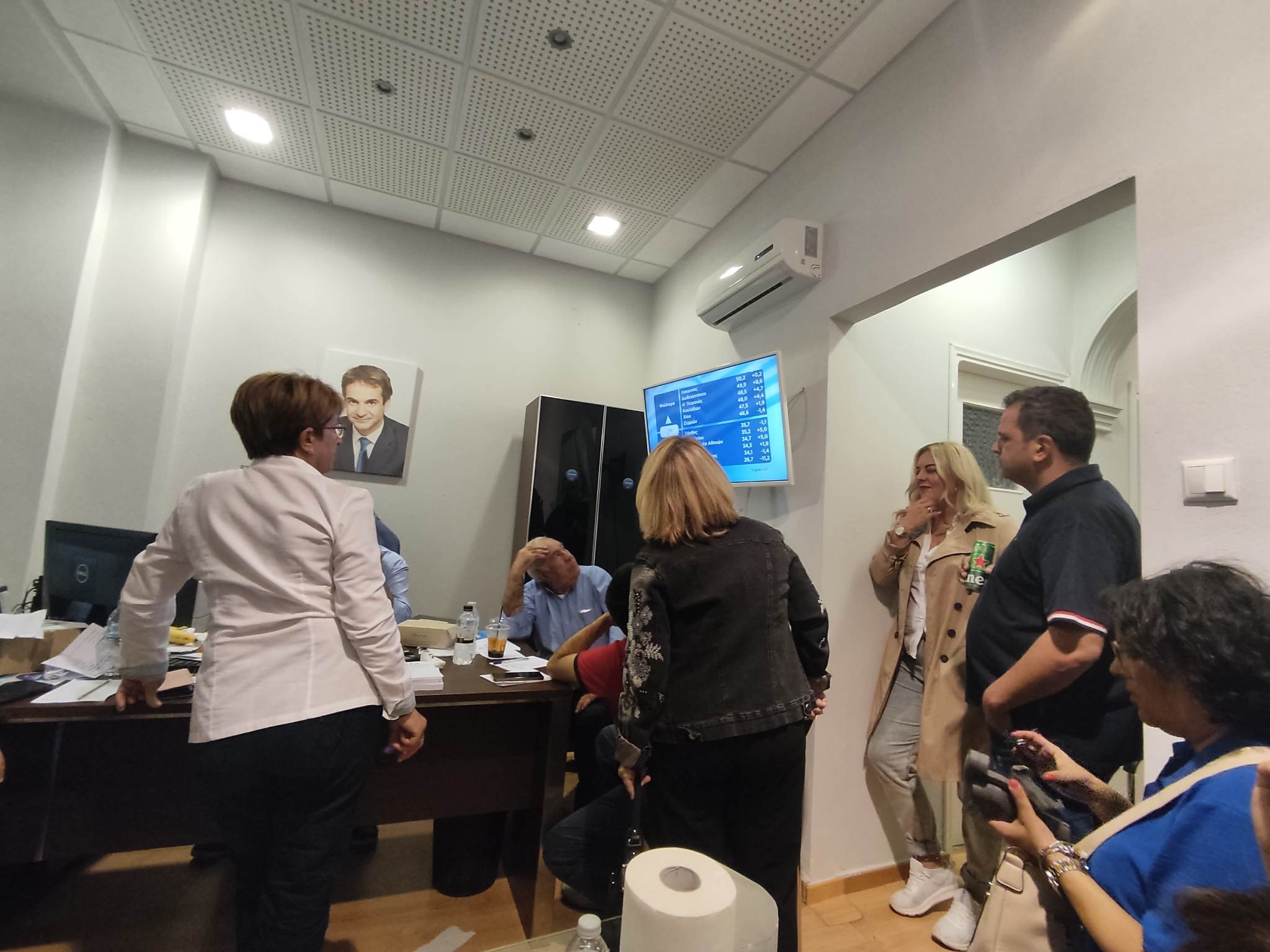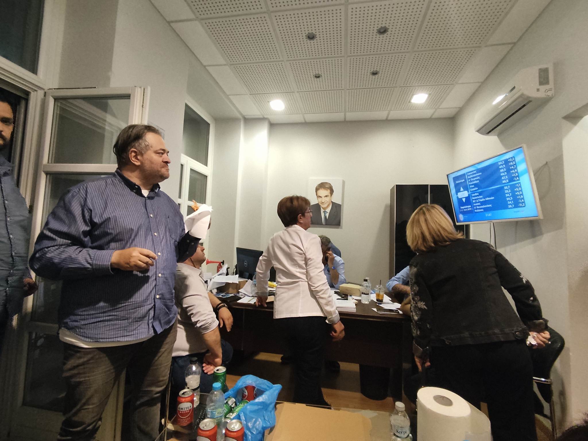 Πανηγυρισμοί και χαμόγελα επικράτησαν στα γραφεία της ΔΕΕΠ Κυκλάδων της Νέας Δημοκρατίας στη Σύρο με τα αποτελέσματα των εθνικών εκλογών, σύμφωνα με τα οποία η γαλάζια παράταξη συνέτριψε τον ΣΥΡΙΖΑ-ΠΣ, επιτυγχάνοντας γερό προβάδισμα 20 μονάδων πανελλαδικά.