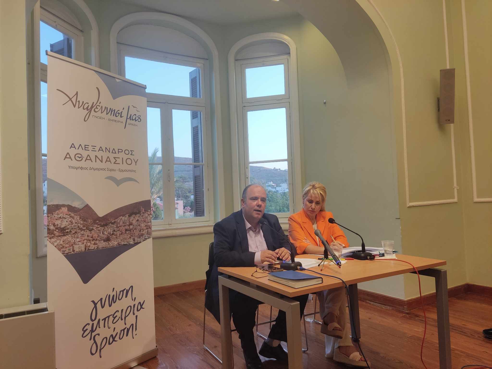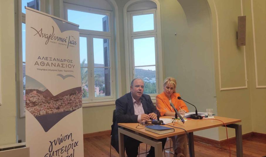 Μία “απόλυτα ανοικτή επικοινωνία με τους πολίτες της Σύρου” επιδιώκει να “χτίσει” ο υποψήφιος δήμαρχος και επικεφαλής του συνδυασμού “Αναγέννησί μας”, Αλέξης Αθανασίου, την οποία εγκαινίασε με την πρώτη συνέντευξη Τύπου που παραχώρησε χθες το απόγευμα, από τον χώρο της έπαυλης Τσιροπινά στην Ποσειδωνία.