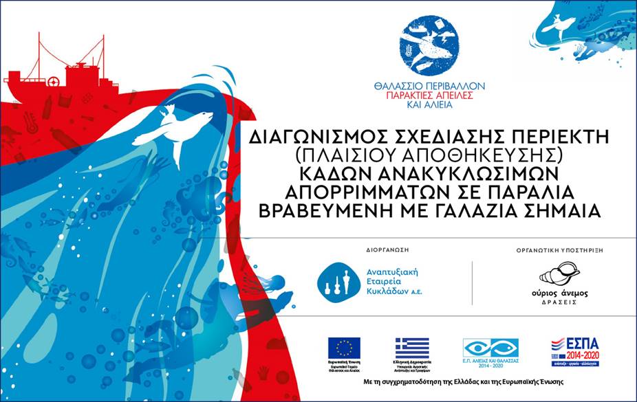 Η Αναπτυξιακή Εταιρεία Κυκλάδων Α.Ε. διοργανώνει διαγωνισμό σχεδίασης περιέκτη (πλαισίου αποθήκευσης) κάδων ανακυκλώσιμων απορριμμάτων, σε παραλία βραβευμένη με γαλάζια σημαία.