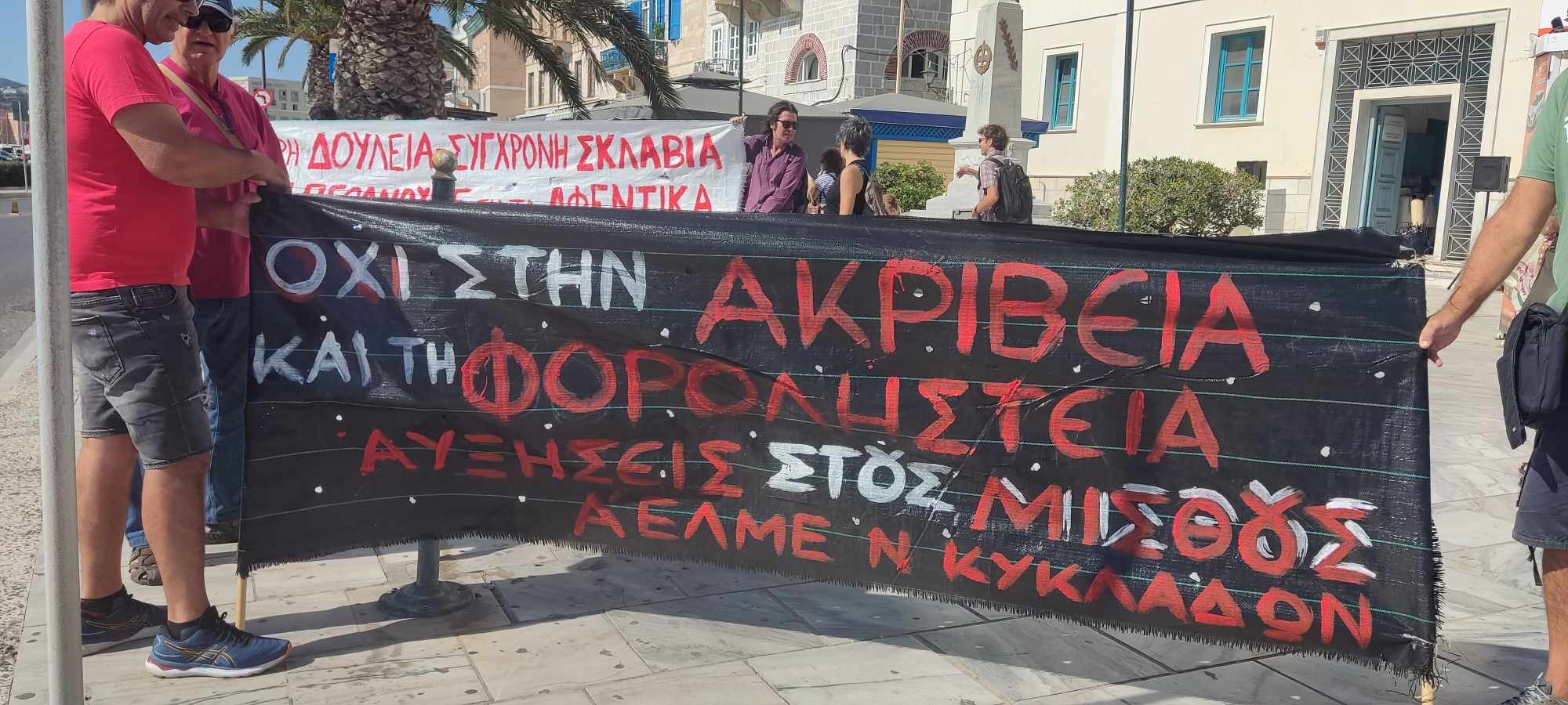 Απήργησαν χθες αρκετοί πολίτες στη Σύρο με φόντο τα προωθούμενα μέτρα και τις αλλαγές στο πεδίο της εργασίας, από το Υπ. Εργασίας και Κοινωνικής Ασφάλισης