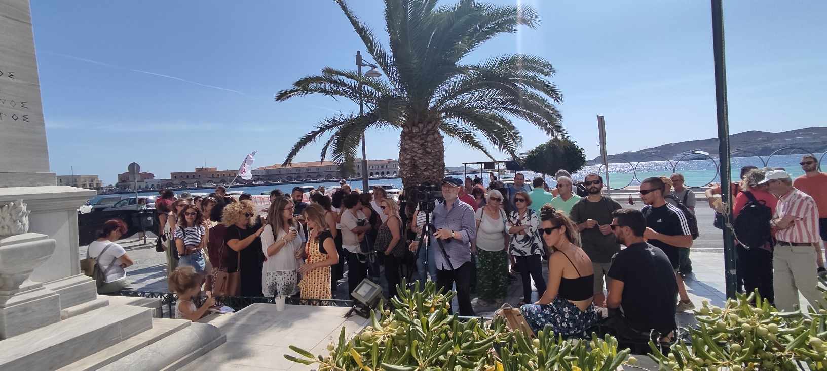 Δάσκαλοι, ιδιωτικοί υπάλληλοι και εργαζόμενοι στο Δημόσιο έδωσαν “ραντεβού” στο παραλιακό μέτωπο της Ερμούπολης, στο πλαίσιο των ανακοινώσεων που είχαν εκδώσει Σωματεία και Σύλλογοι της Σύρου.