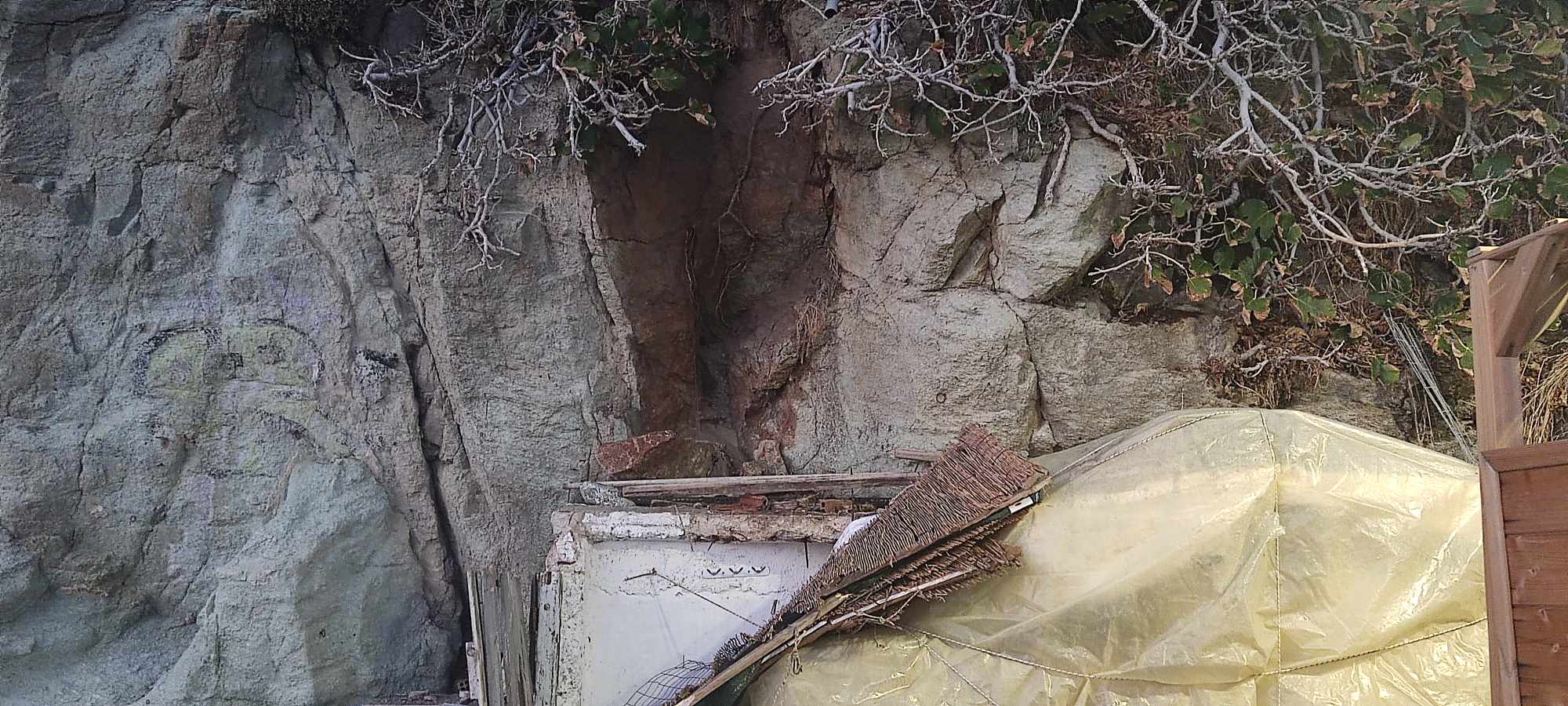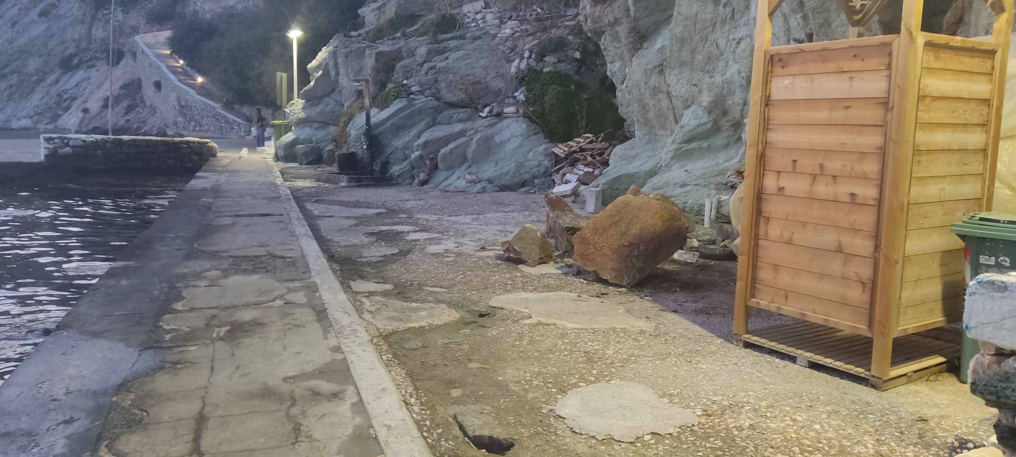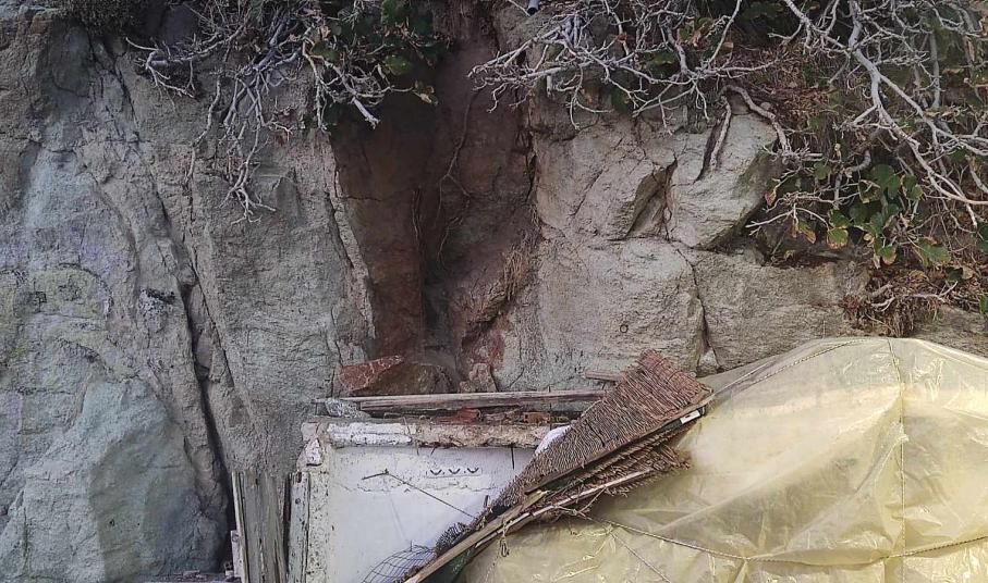 Όπως διακρίνεται στο φωτογραφικό υλικό της “Κοινής Γνώμης”, μεγάλα τμήματα από βραχώδες σημείο, ουσιαστικά… κατέρρευσαν και καταπλάκωσαν μέρος ενός παραπήγματος, δίπλα ακριβώς από το ξύλινο αποδυτήριο λουομένων.