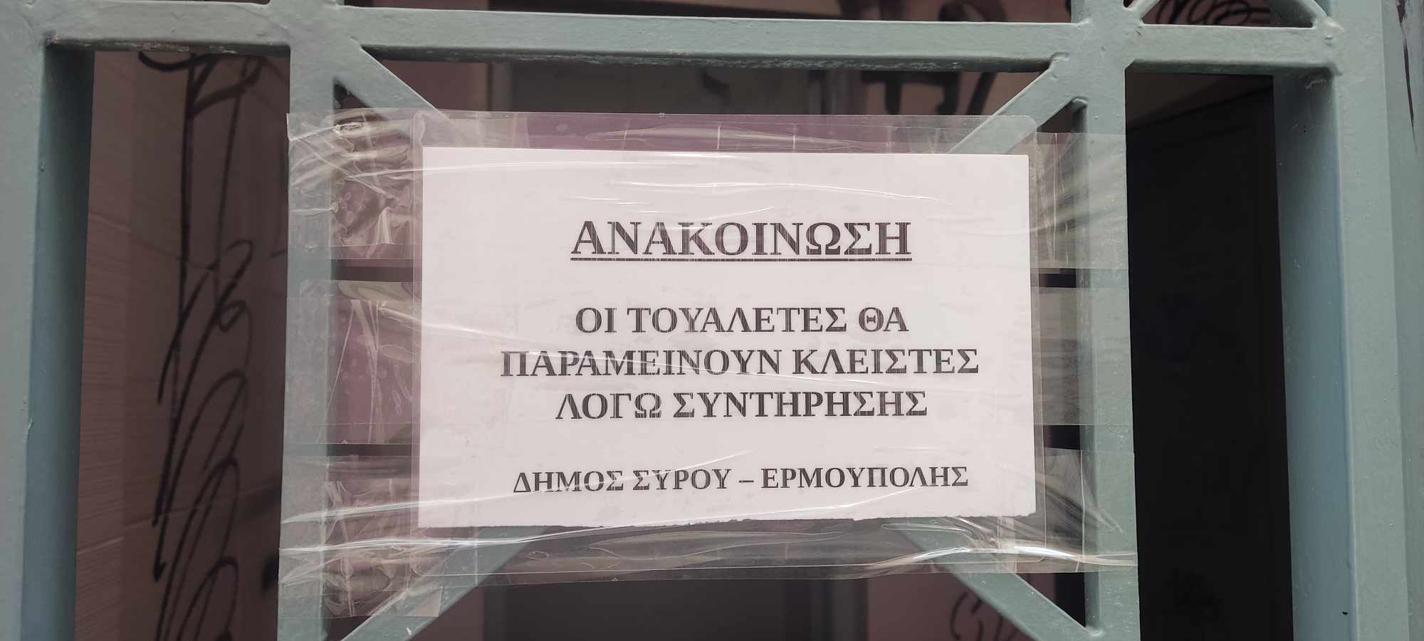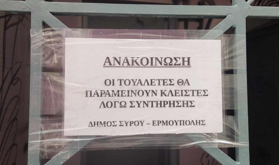 Σε εργασίες συνολικής συντήρησης και αποκαταστάσεων στις τουαλέτες της οδού Ανάφης στο κέντρο της Ερμούπολης, προχωρά ο Δήμος, έχοντας βάλει προσωρινά… λουκέτο, για να κάνει τις προγραμματισμένες παρεμβάσεις του.