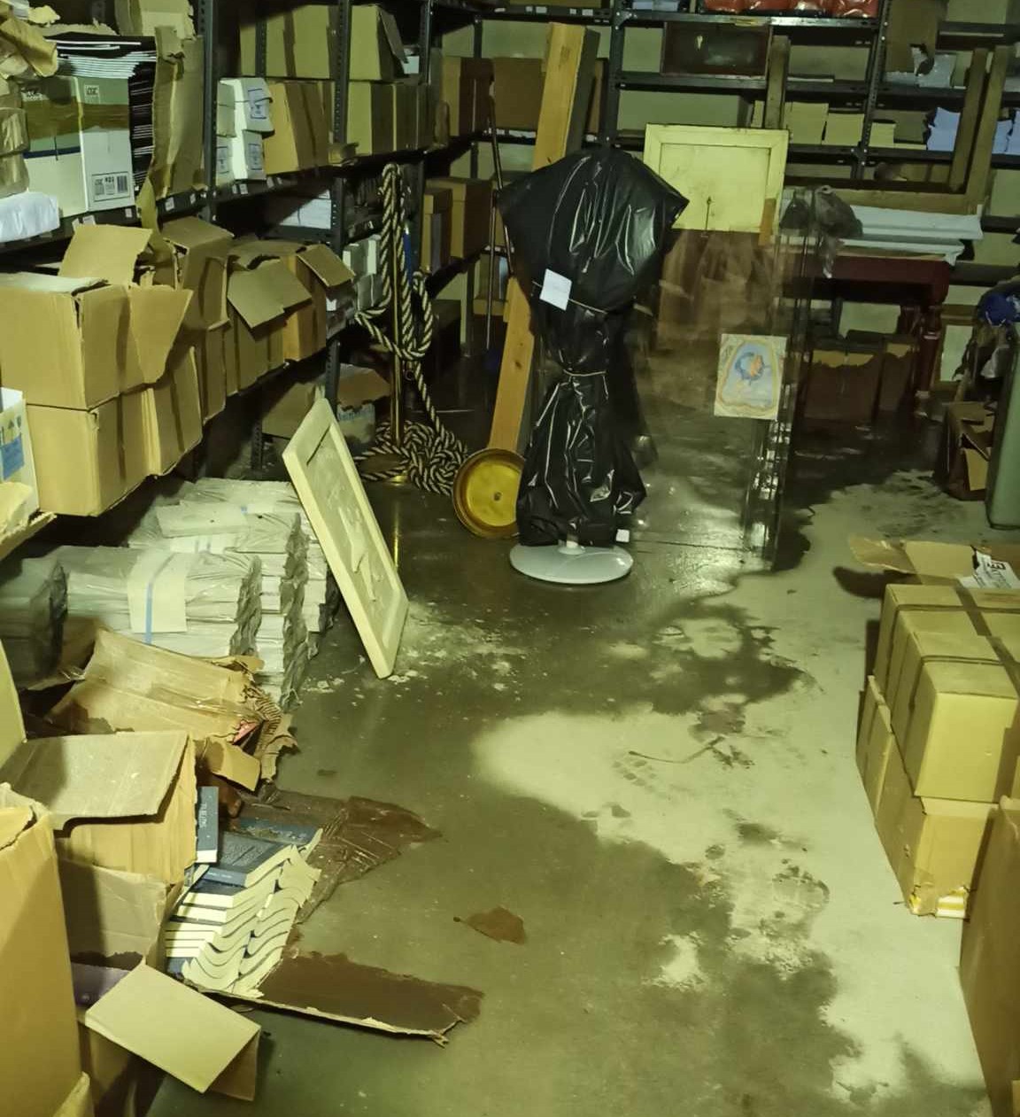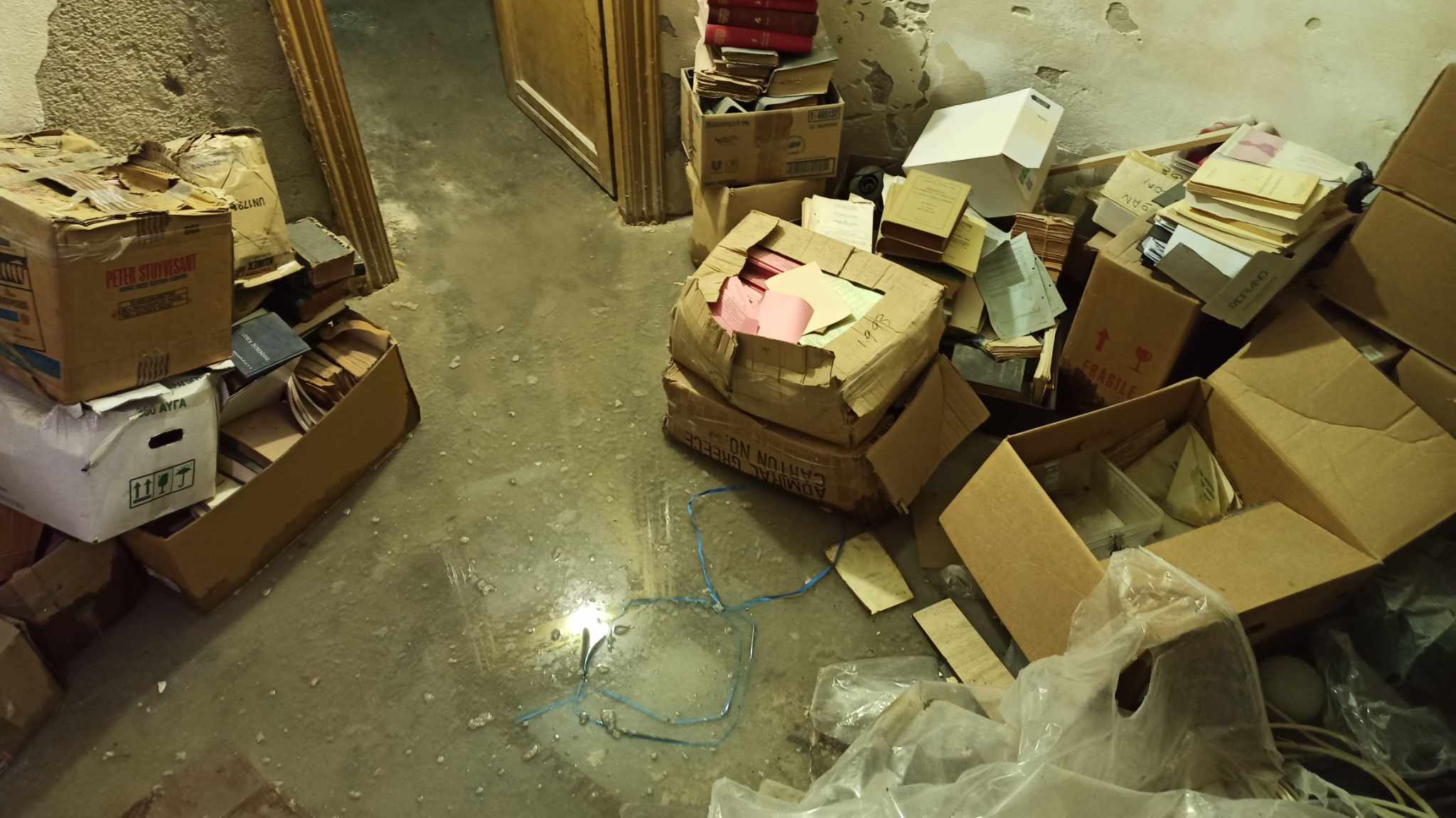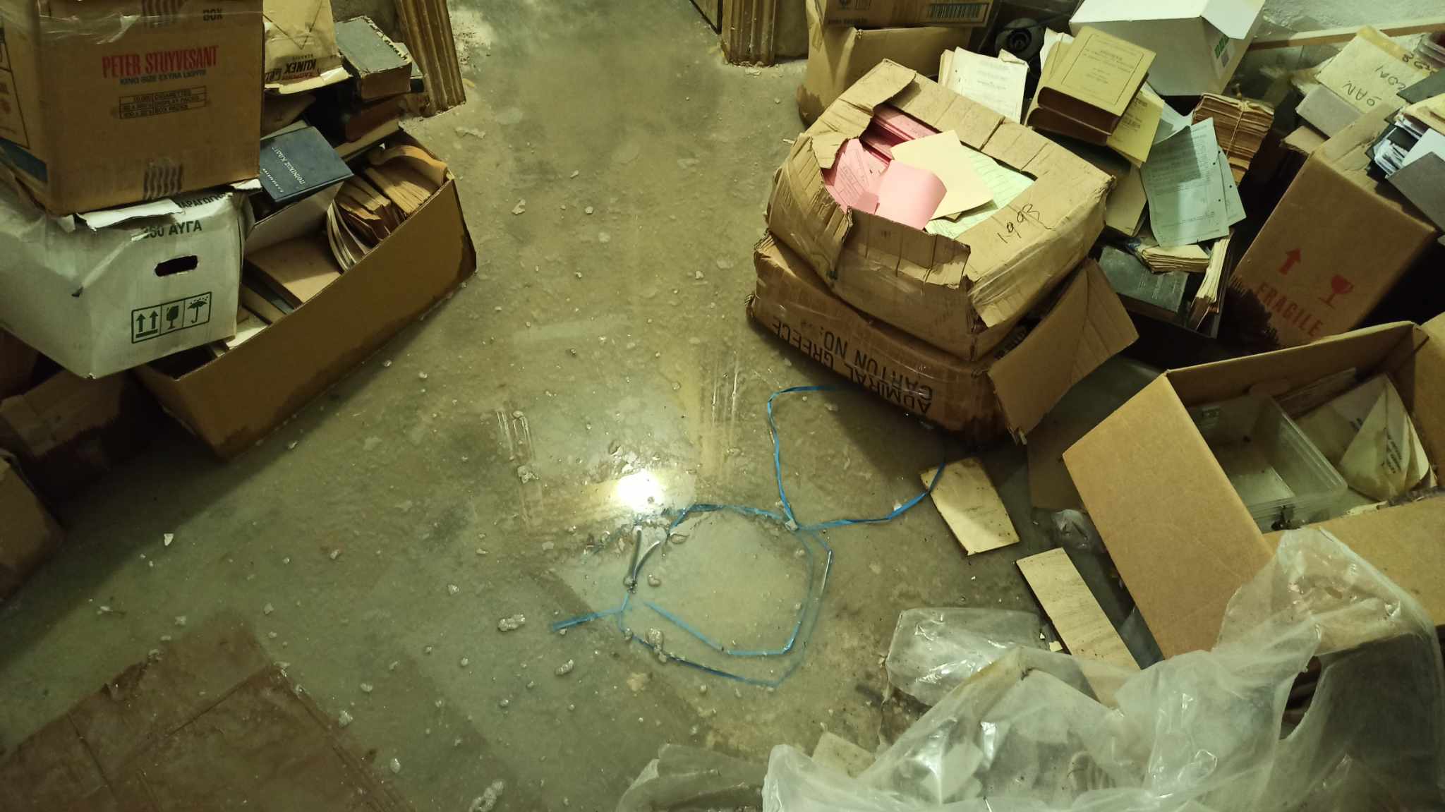 Συγκεκριμένα χθες το πρωί εντοπίστηκε εκτεταμένη εισροή υδάτων στον υπόγειο χώρο του κτηρίου, όπου φυλάσσονται φάκελοι με αρχειακό υλικό του Δήμου, νομικά βιβλία, καθώς επίσης και διάφορα άλλα αντικείμενα.