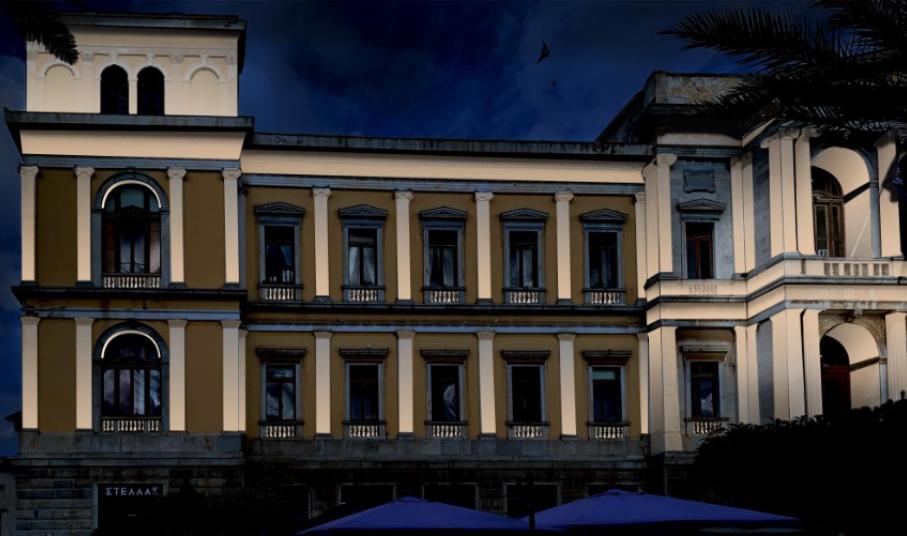 Με απόλυτο σεβασμό στην ιδιαίτερη αρχιτεκτονική αξία του Δημαρχιακού Μεγάρου Σύρου, εκπόνησε τη μελέτη φωτισμού του, ο αρχιτέκτονας, Σίμωνας Σίμος, ο οποίος την προσφέρει στον Δήμο Σύρου – Ερμούπολης με τη μορφή δωρεάς, για να την υλοποιήσει, στο πλαίσιο της εκτέλεσης και του έργου της αποκατάστασης των όψεων του ιστορικού κτηρίου.