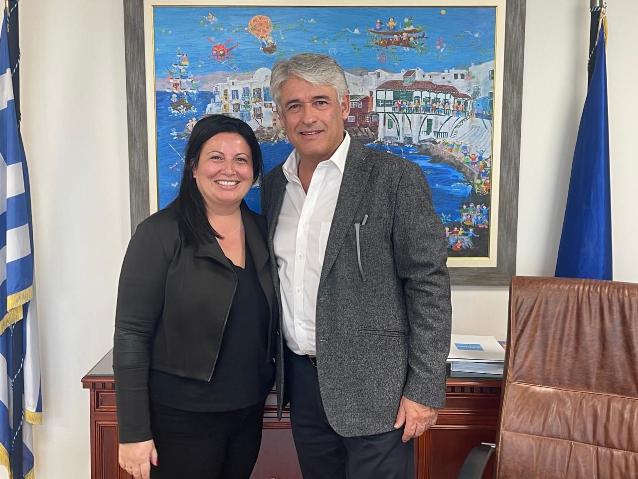 Συνάντηση εργασίας με τον γενικό γραμματέα του Ελληνικού Οργανισμού Τουρισμού (ΕΟΤ), Ανδρέα Φιορεντίνο, στο γραφείο του, πραγματοποίησε η αντιδήμαρχος Τουρισμού του Δήμου Σύρου Ερμούπολης, Χρηστιάννα Πάπιτση.