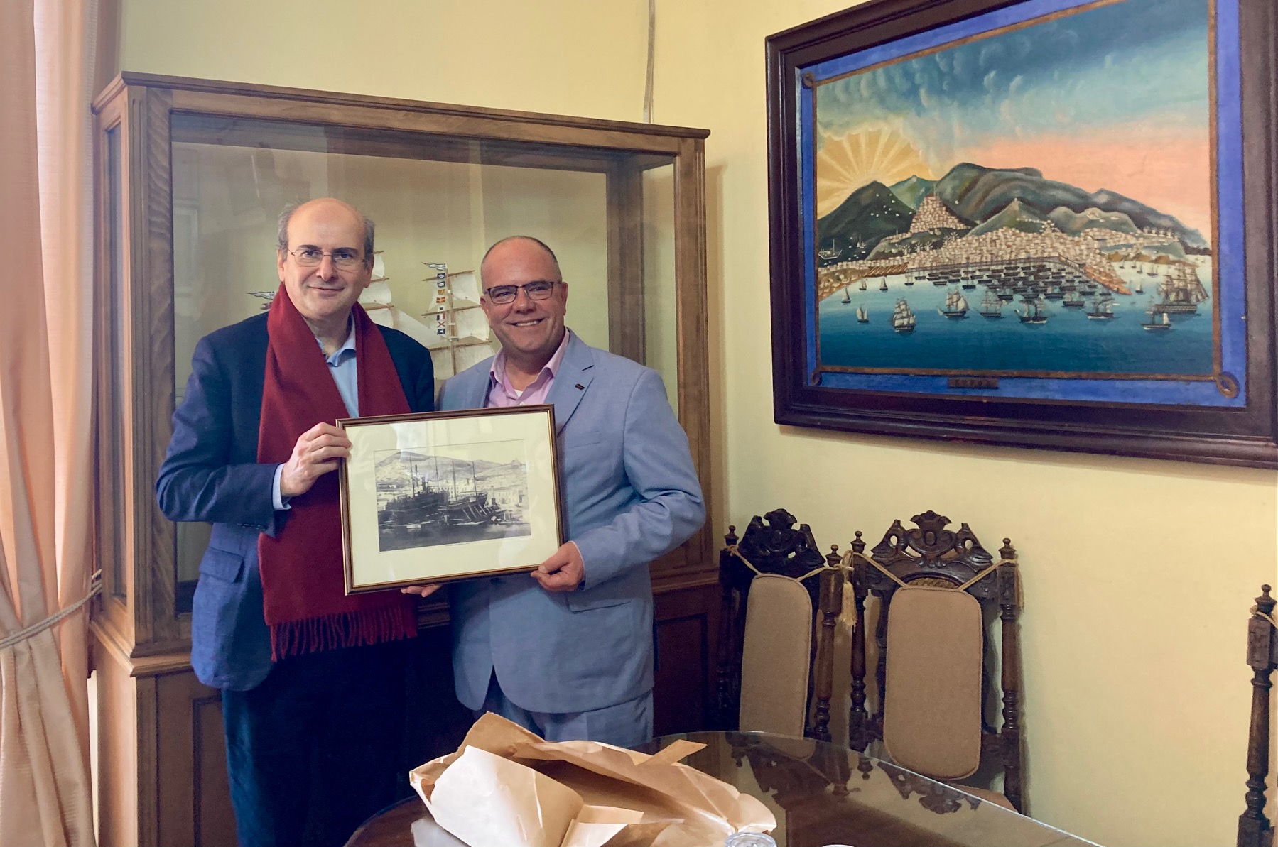 Η συνάντηση ολοκληρώθηκε σε πολύ καλό κλίμα, με αμοιβαίες διαβεβαιώσεις για στενή συνεργασία του Υπουργείου Εθνικής Οικονομίας και Οικονομικών με τον Δήμο Σύρου – Ερμούπολης και ο δήμαρχος προσέφερε στον υπουργό γκραβούρα με πρώτο πλάνο το Ναυπηγείο της Σύρου και τους δύο εμβληματικούς λόφους της πόλης μας.