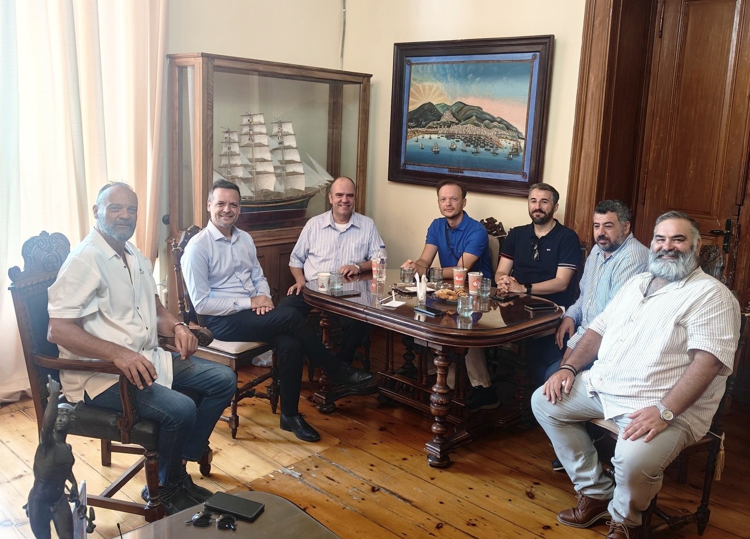 Στο τέλος της συνάντησης, ο Δήμαρχος Σύρου-Ερμούπολης προσέφερε αναμνηστικά στον δήμαρχο Αθηναίων, εκφράζοντας τις ευχαριστίες του, για την επίσκεψή του στο νησί.
